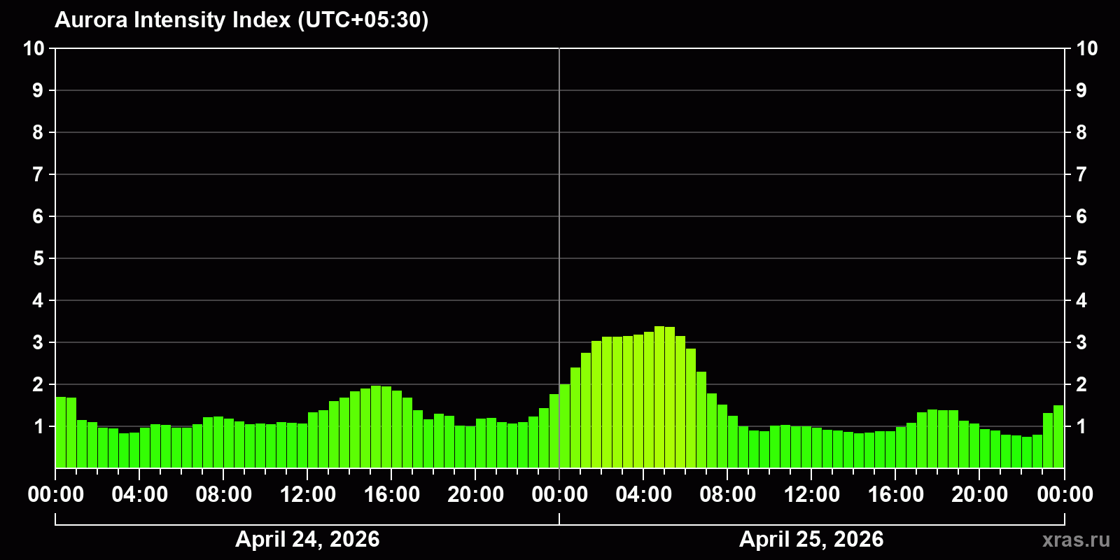 Auroras (northern lights) in Supaul — Apr 25, 2026