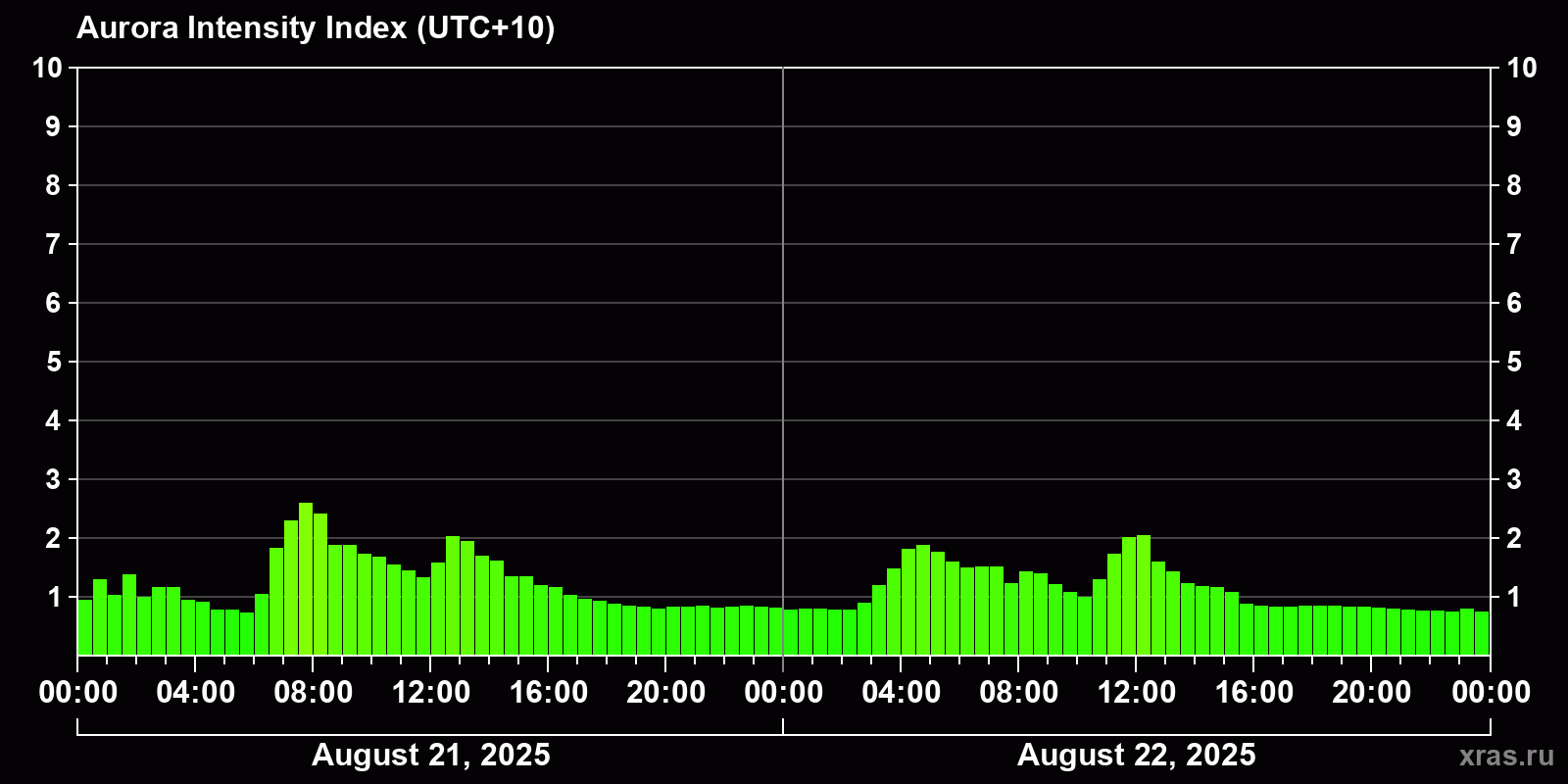 Changes in the auroral intensity index from 2025-08-22 to 2025-08-23 local time