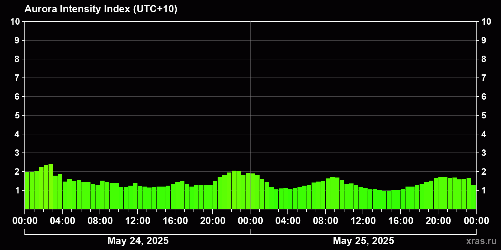 Changes in the auroral intensity index from 2025-05-24 to 2025-05-25 local time