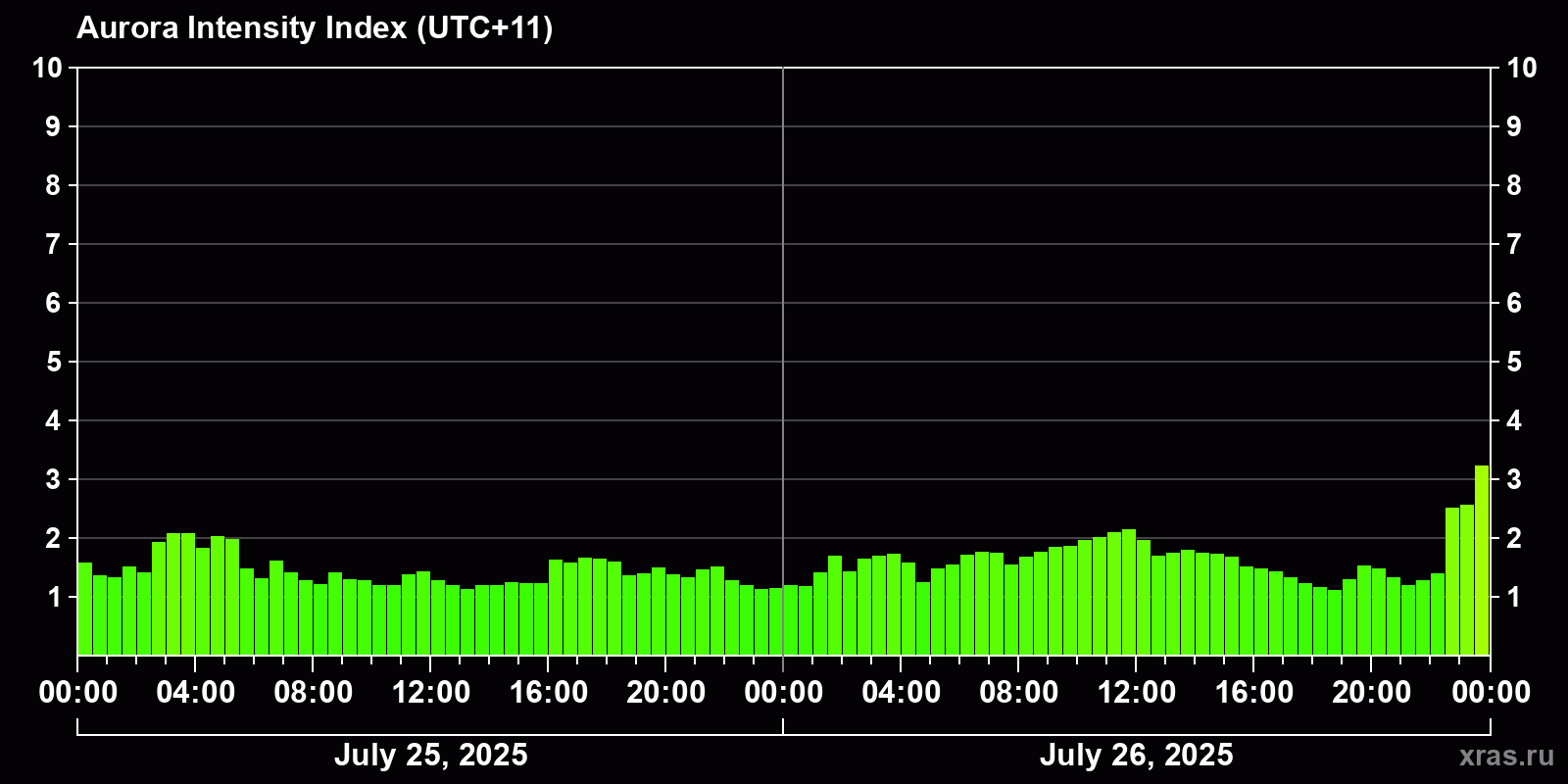 Changes in the auroral intensity index from 2025-07-25 to 2025-07-26 local time