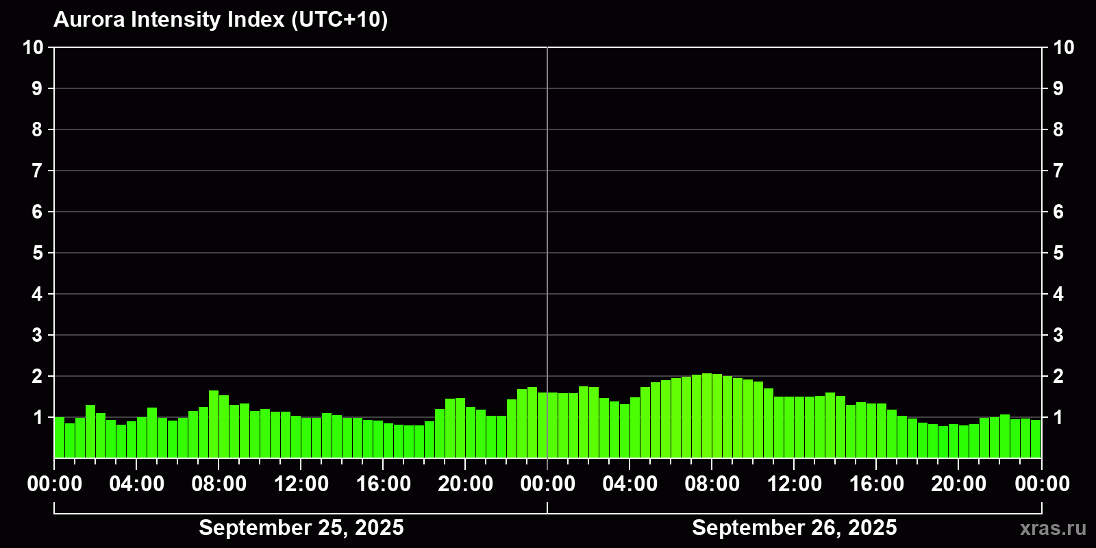 Changes in the auroral intensity index from 2025-09-26 to 2025-09-27 local time