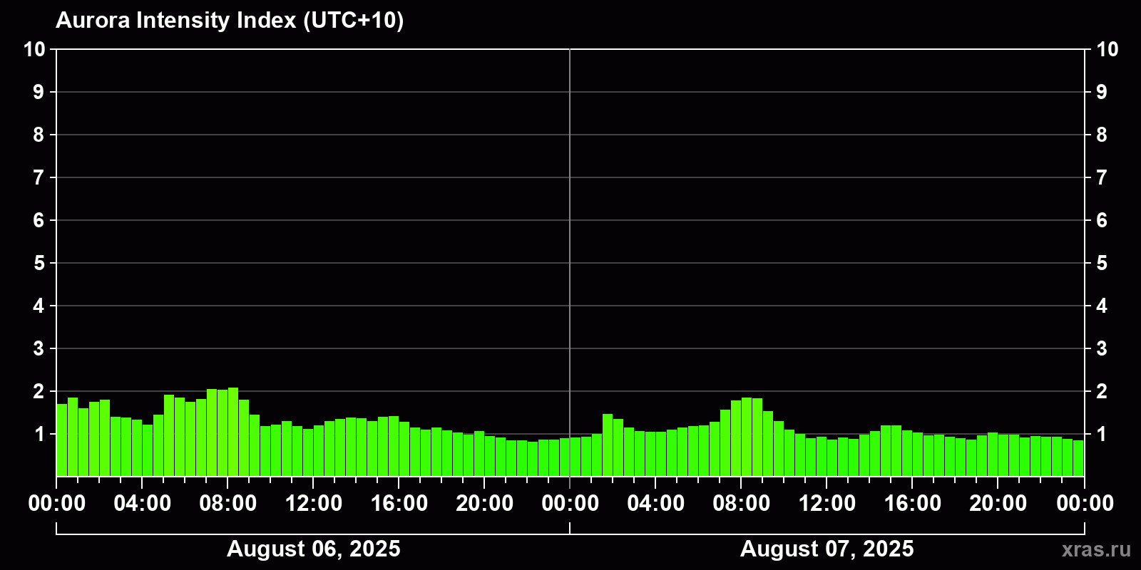 Changes in the auroral intensity index from 2025-08-07 to 2025-08-08 local time