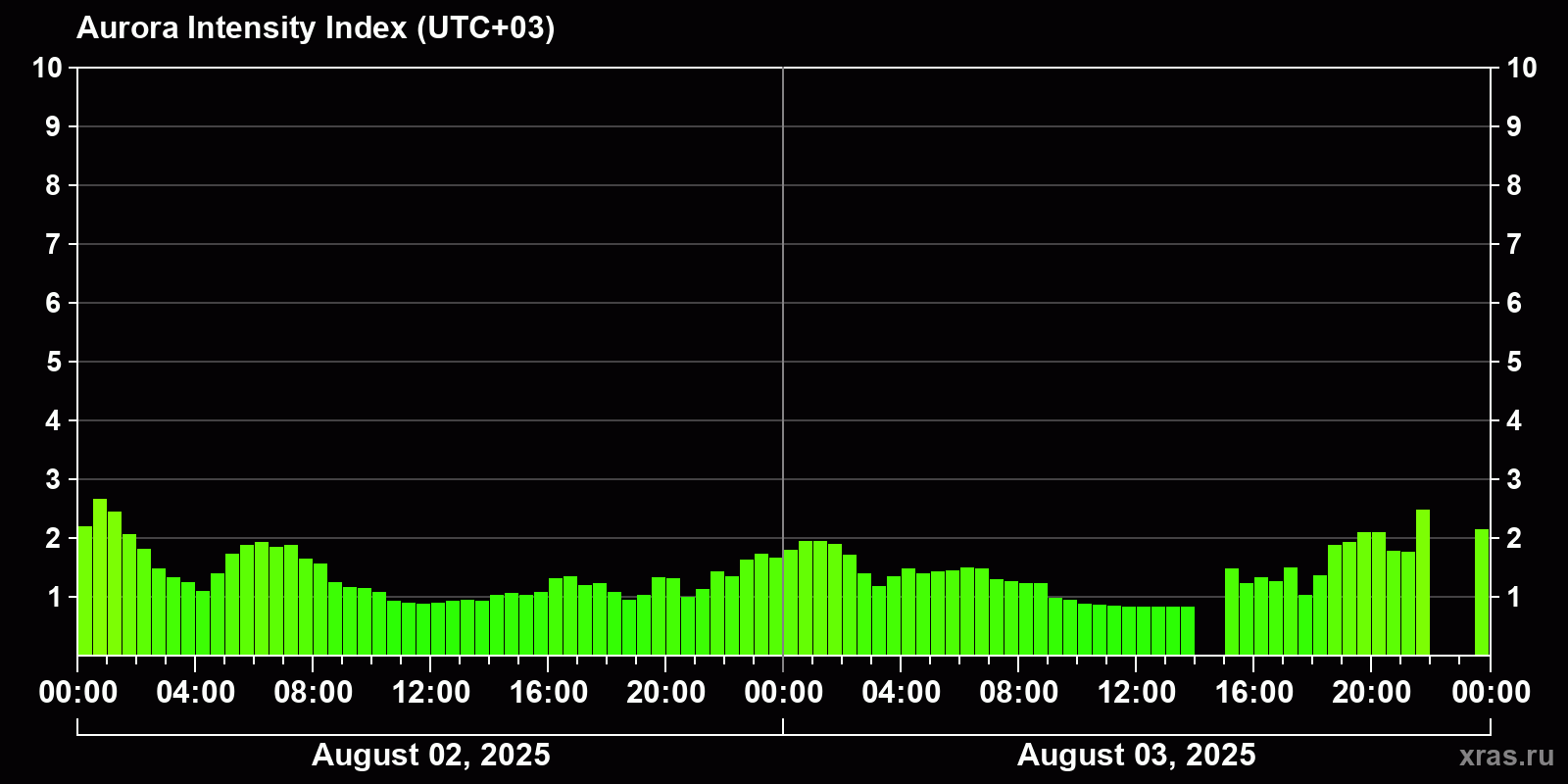 Auroras (northern lights) in Syktyvkar — Aug 03, 2025