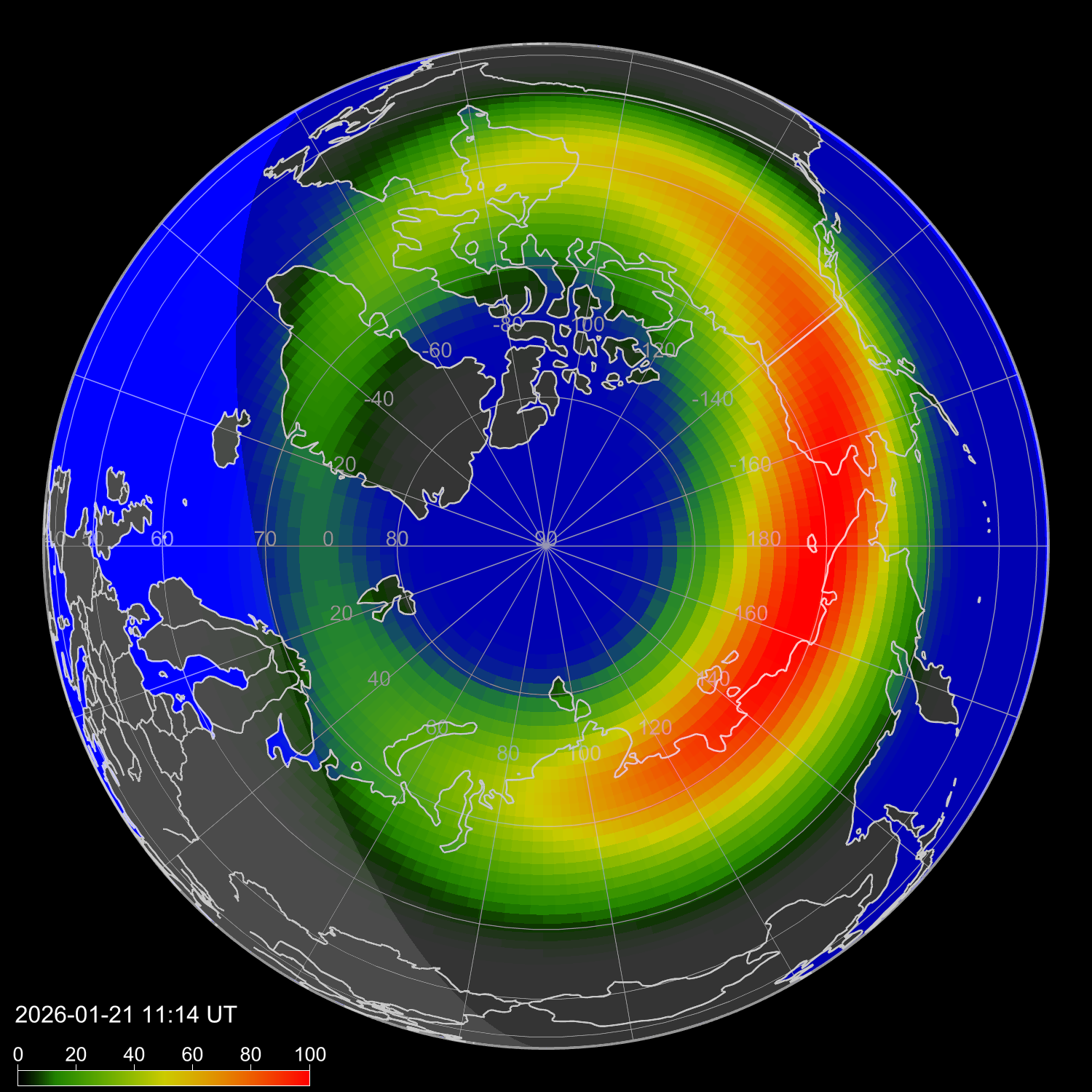 Интенсивность полярных сияний