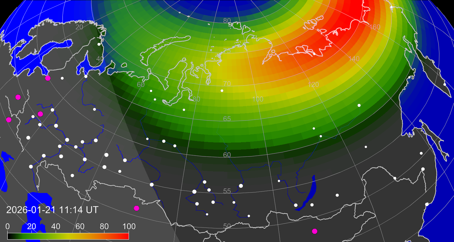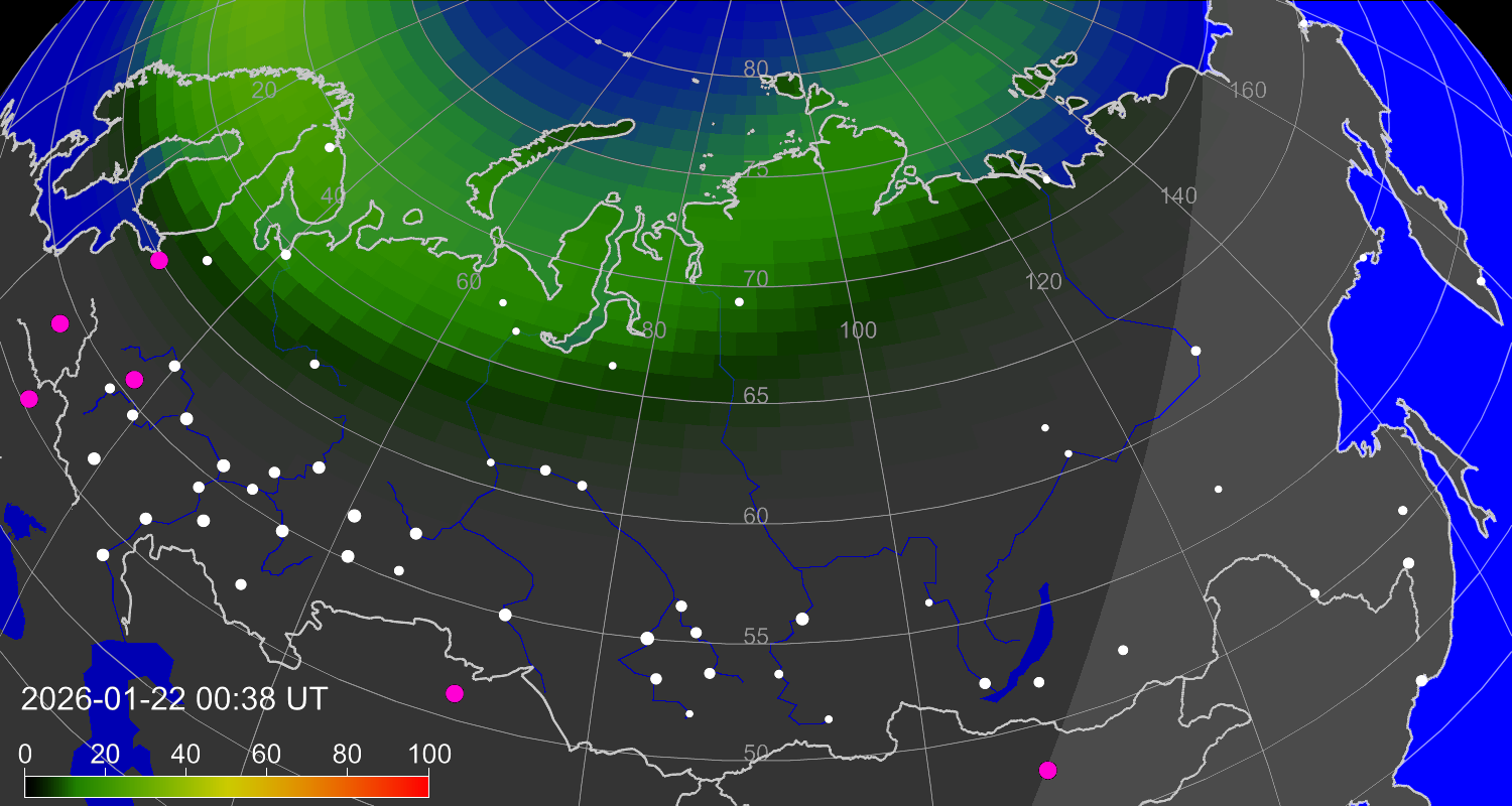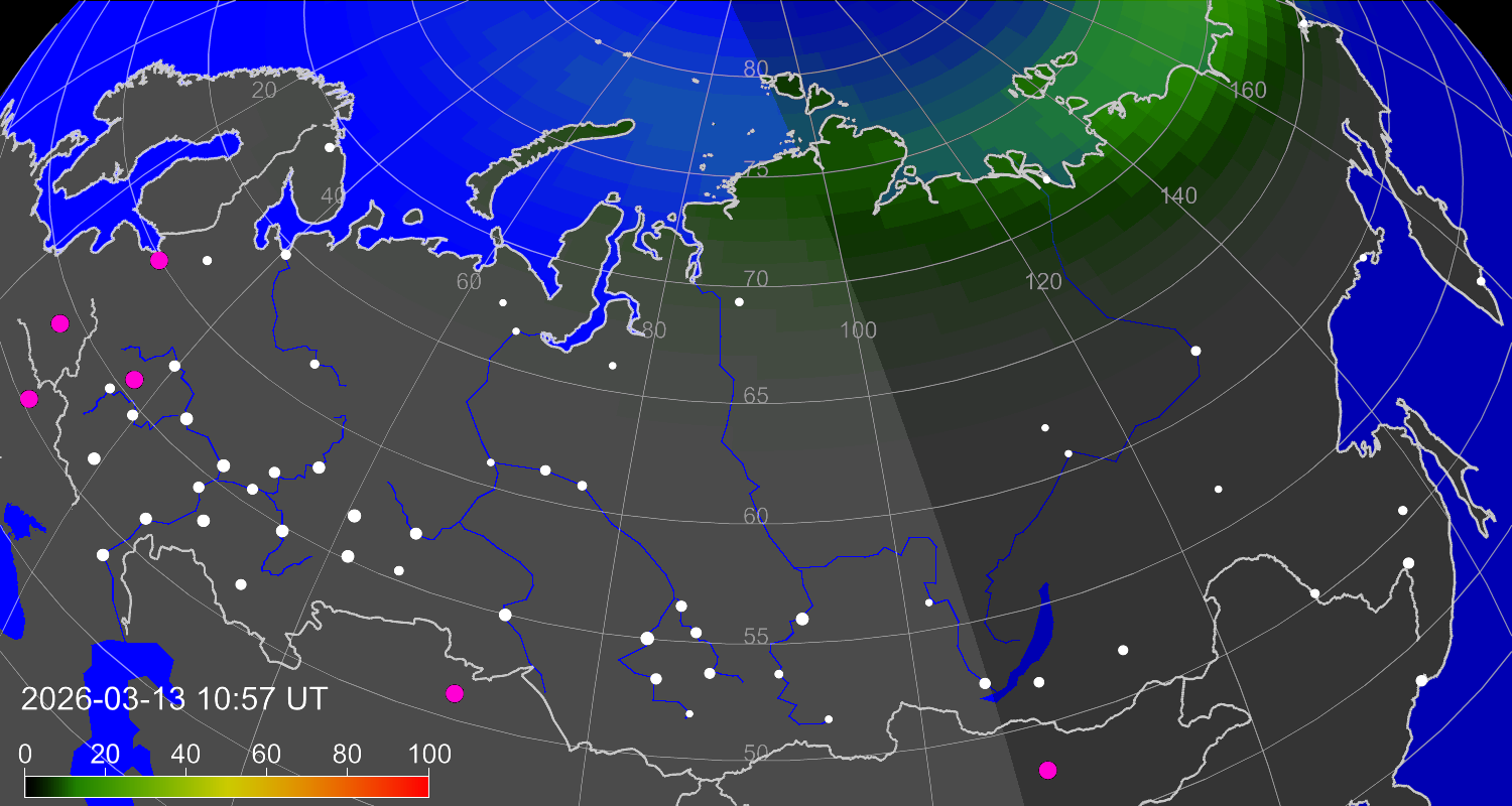 Вероятность полярных сияний в городах Российской Федерации