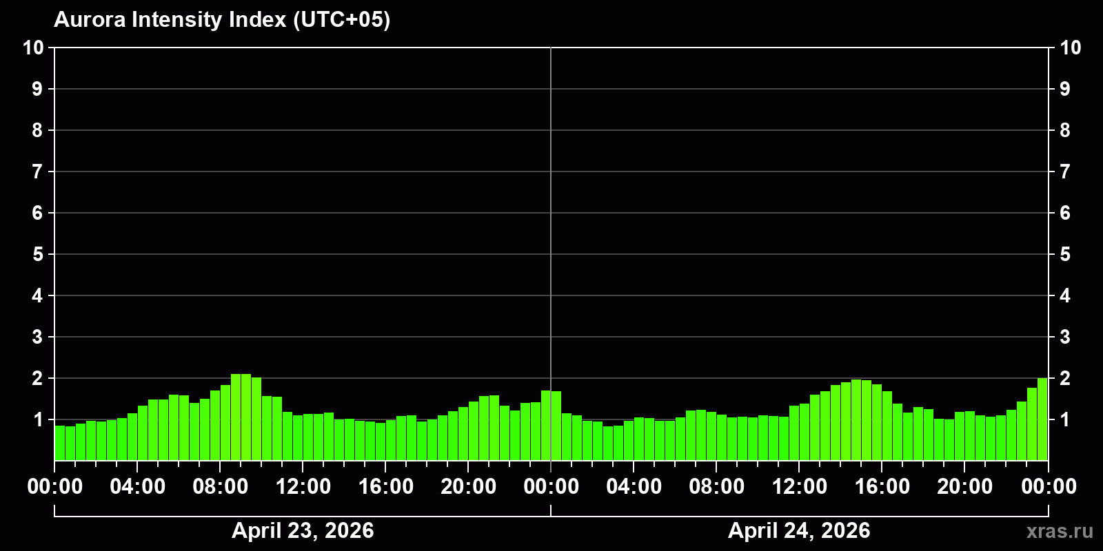 Auroras (northern lights) in Tashkent — Apr 24, 2026