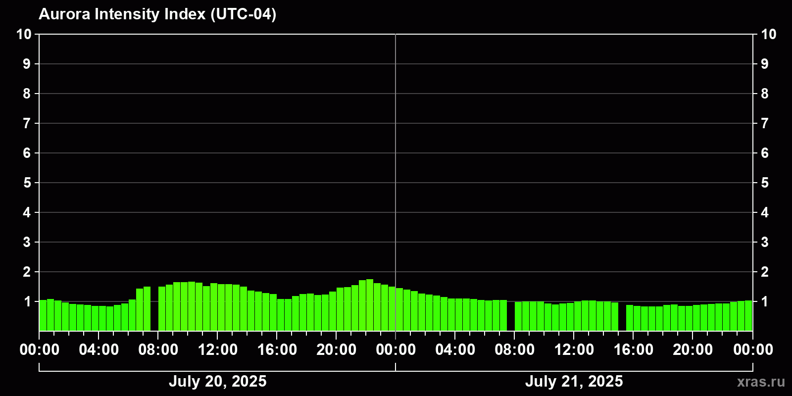 Changes in the auroral intensity index from 2025-07-20 to 2025-07-21 local time