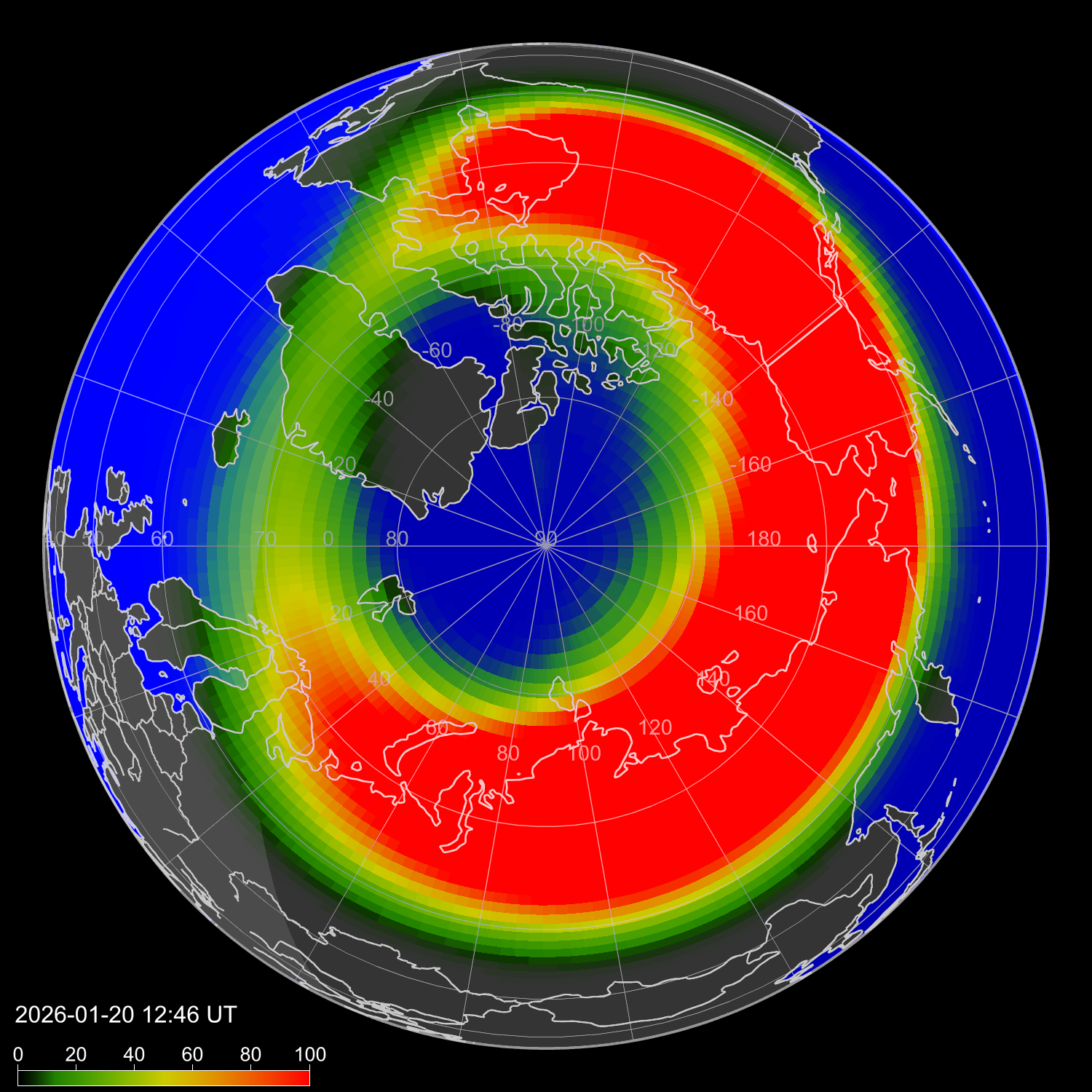 Зона полярных сияний в северном полушарии