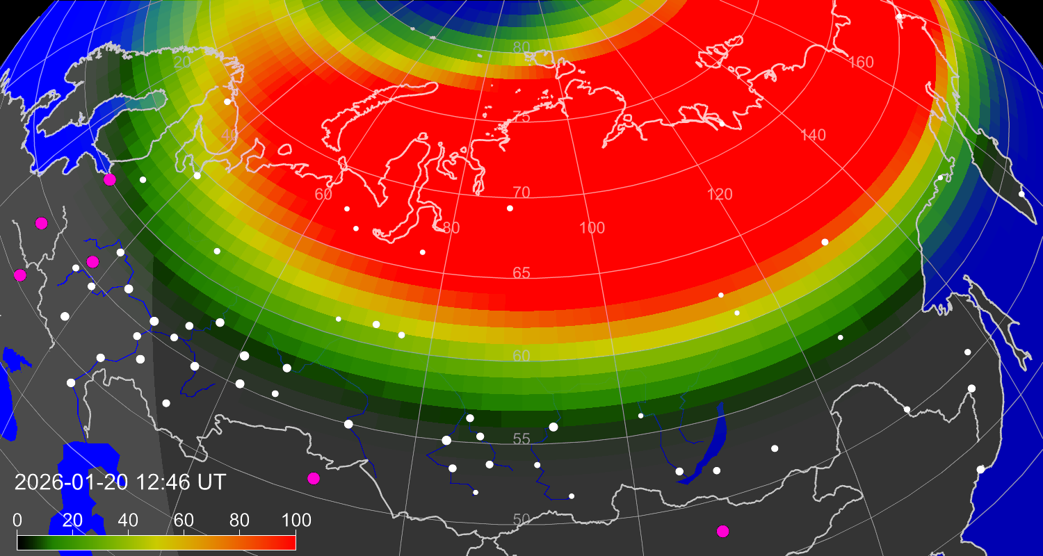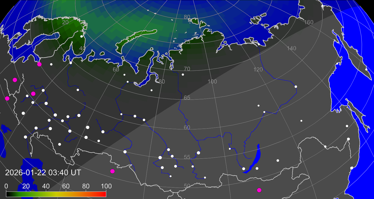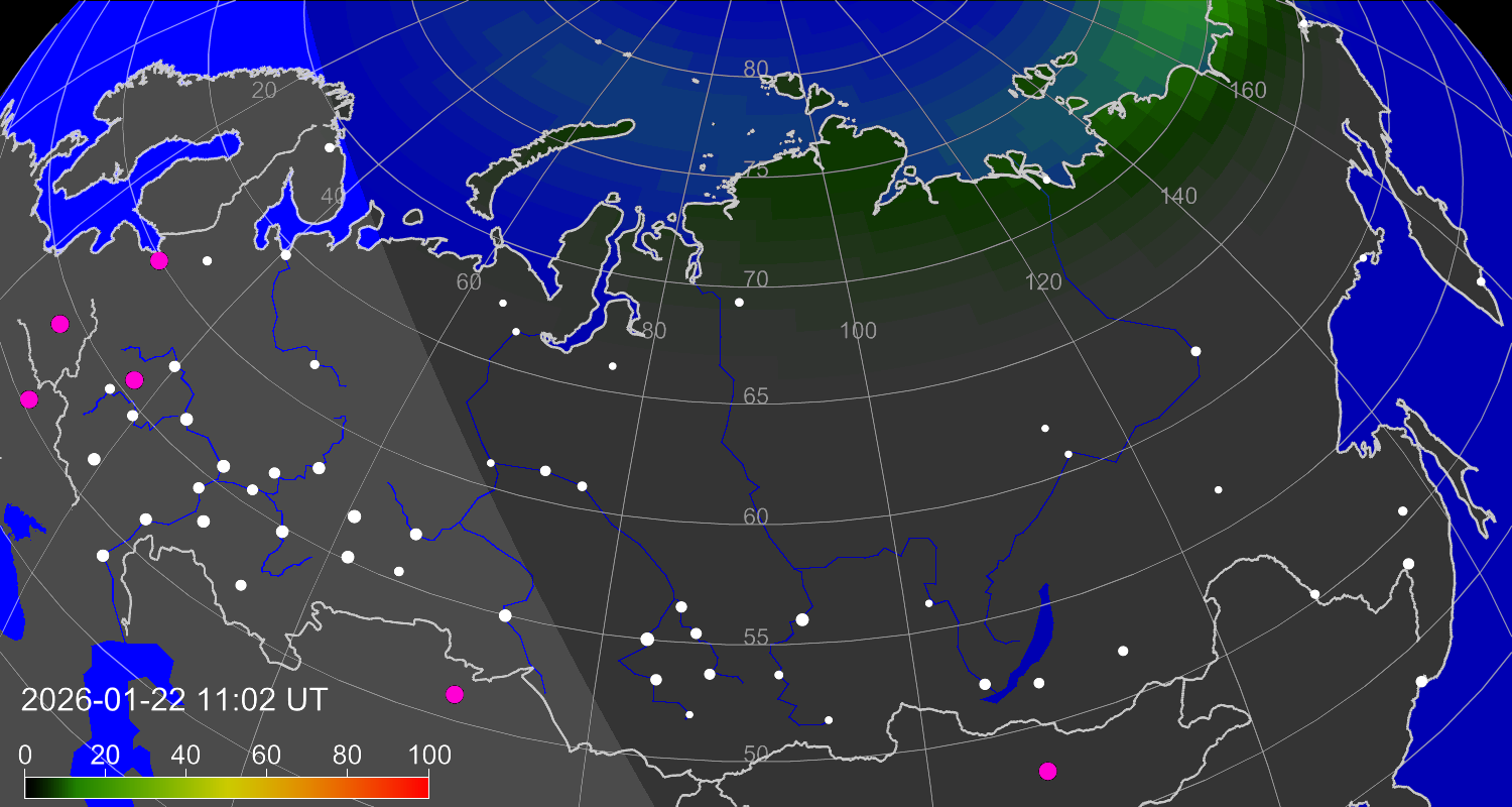 Вероятность полярных сияний в городах Российской Федерации