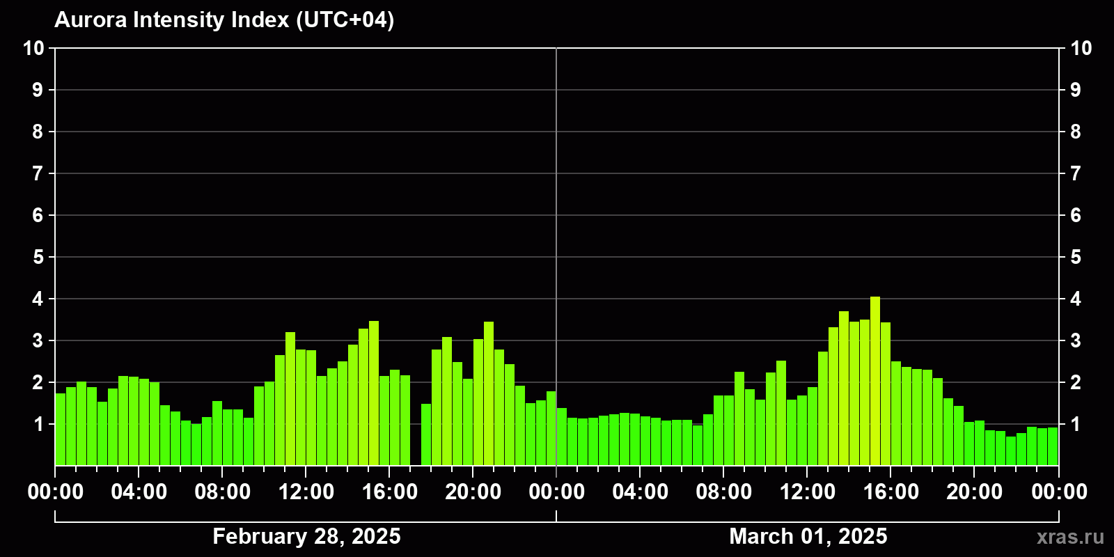 Auroras (northern lights) in Tolyatti — Mar 01, 2025