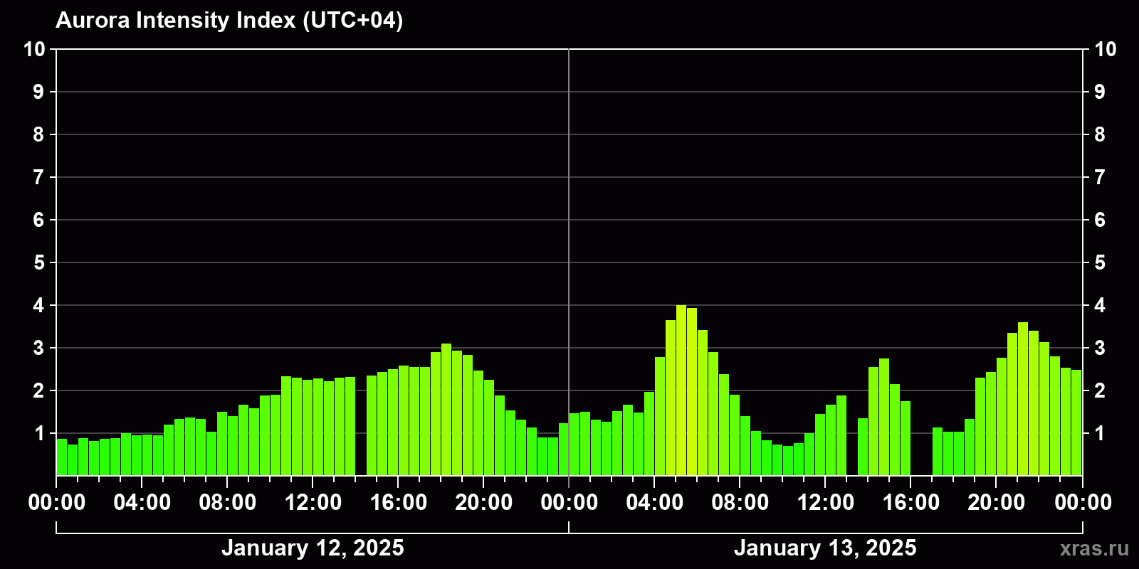 Auroras (northern lights) in Tolyatti — Jan 13, 2025