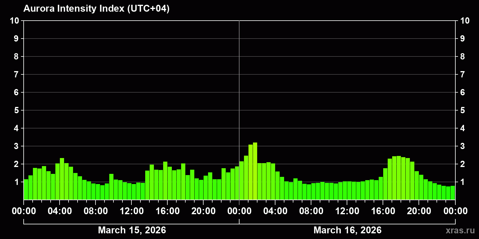Auroras (northern lights) in Tolyatti — Mar 16, 2026