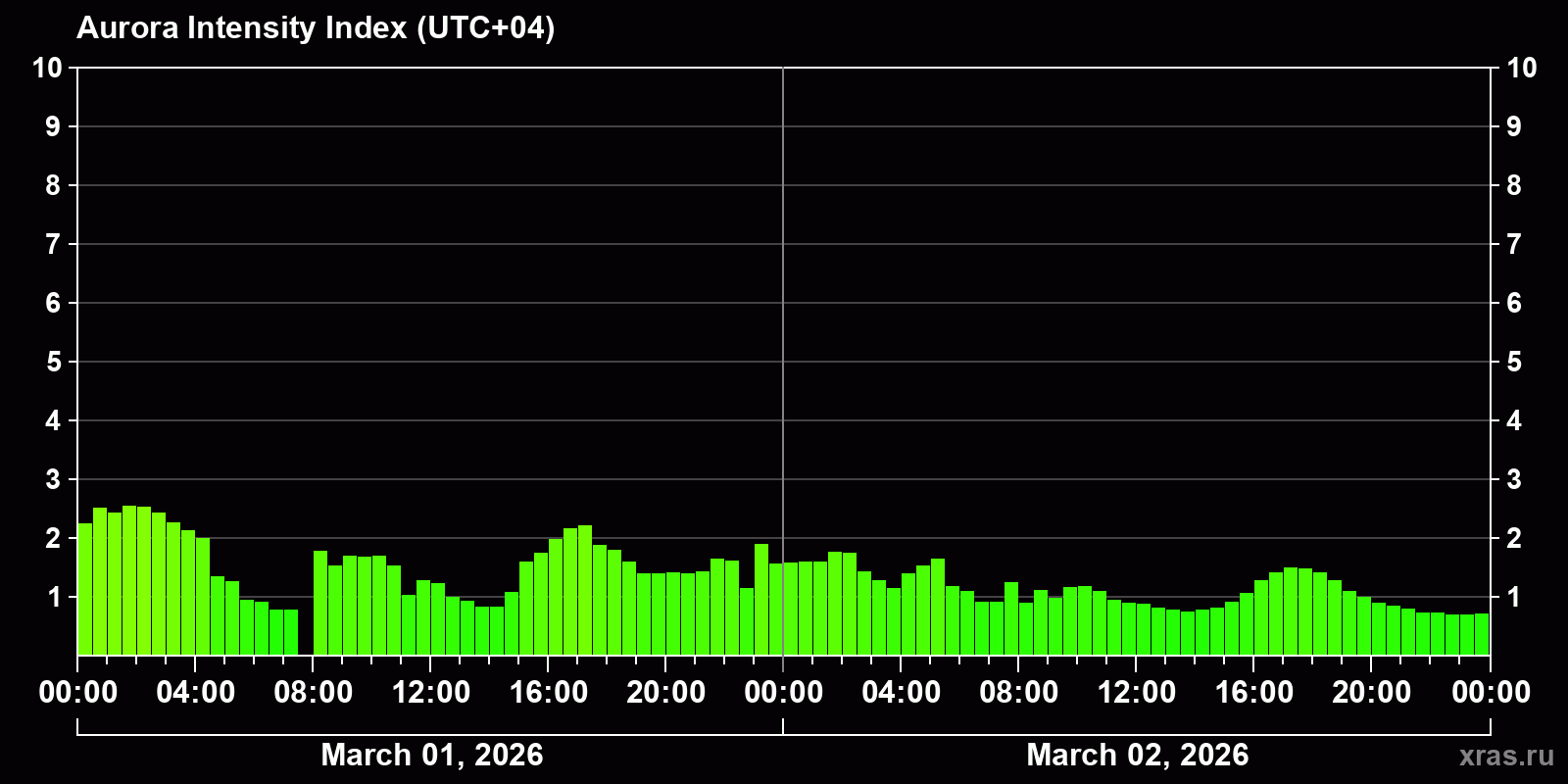 Auroras (northern lights) in Tolyatti — Mar 02, 2026