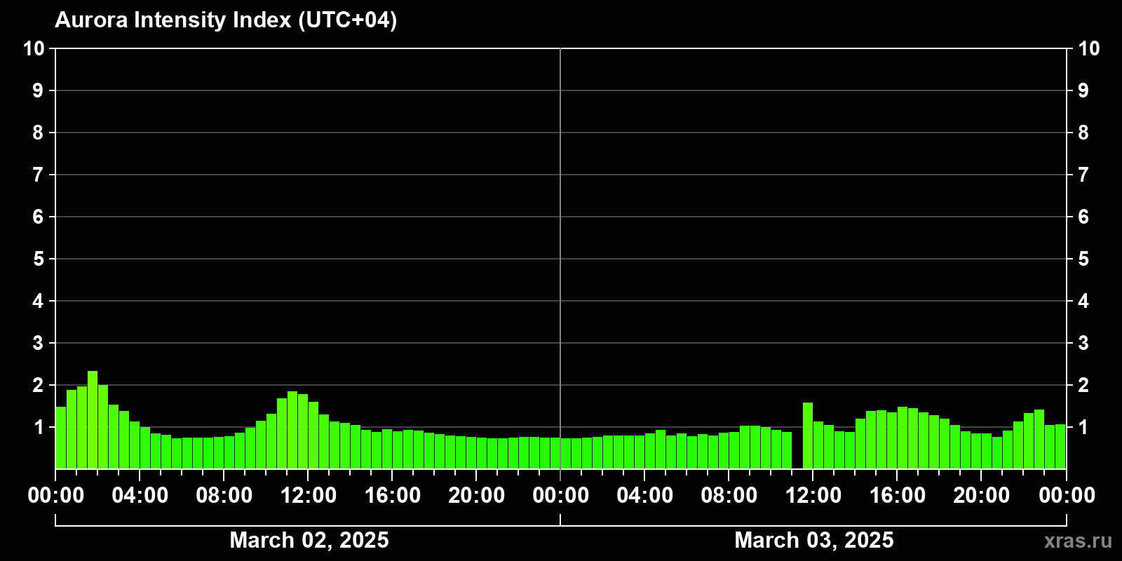 Auroras (northern lights) in Tolyatti — Mar 03, 2025