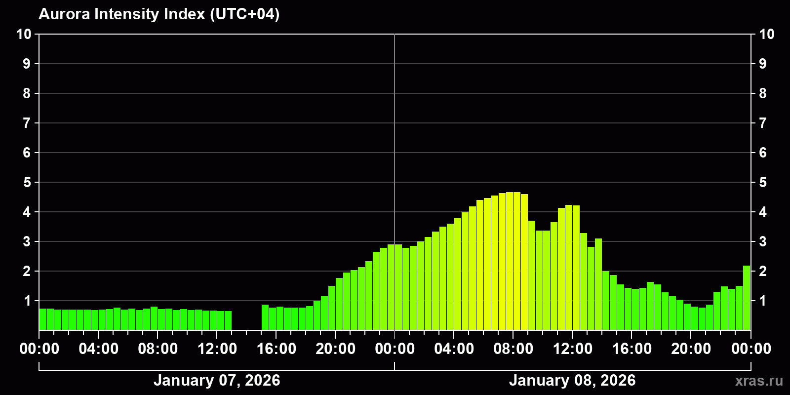 Auroras (northern lights) in Tolyatti — Jan 08, 2026