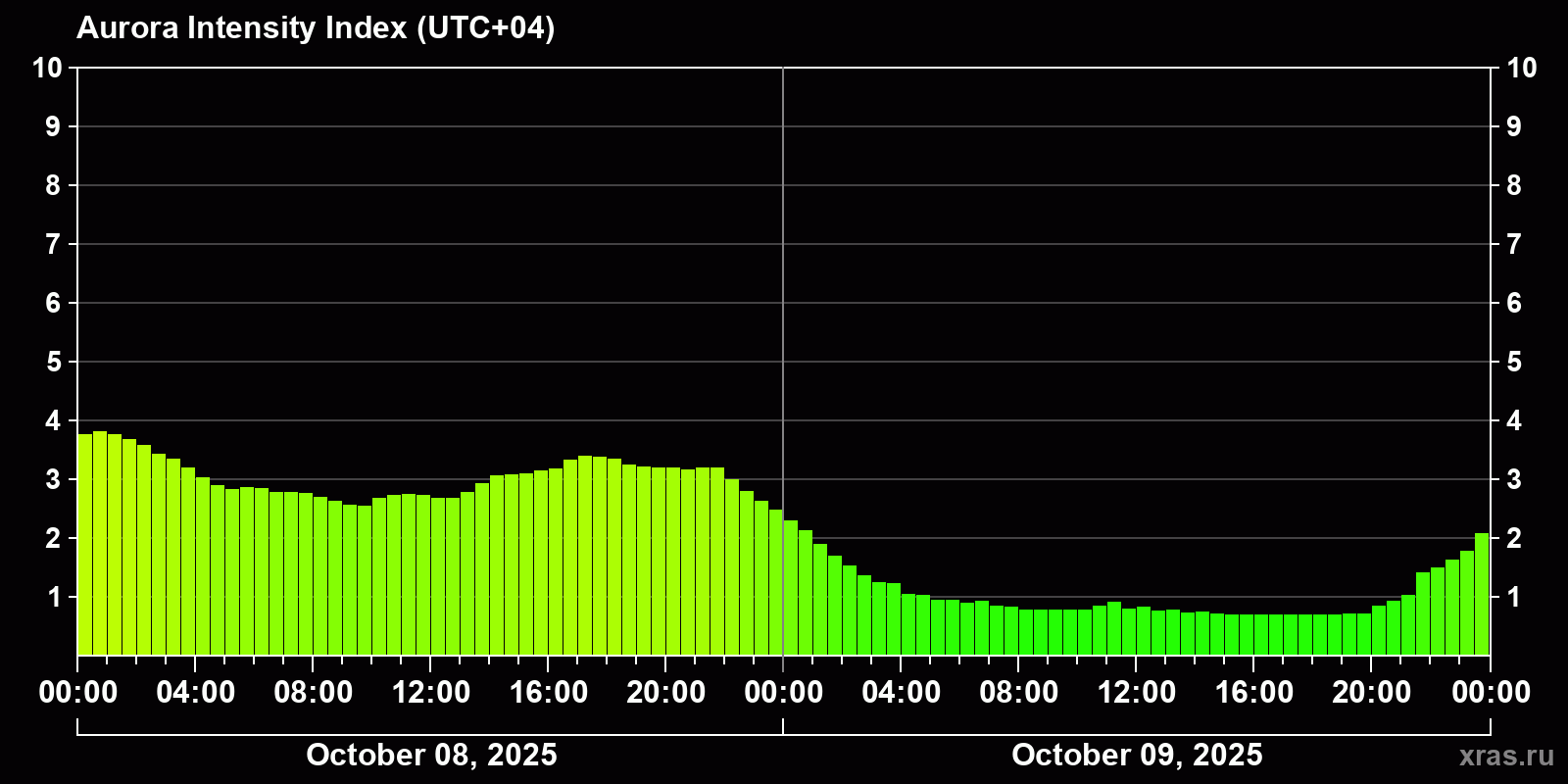 Auroras (northern lights) in Tolyatti — Oct 09, 2025
