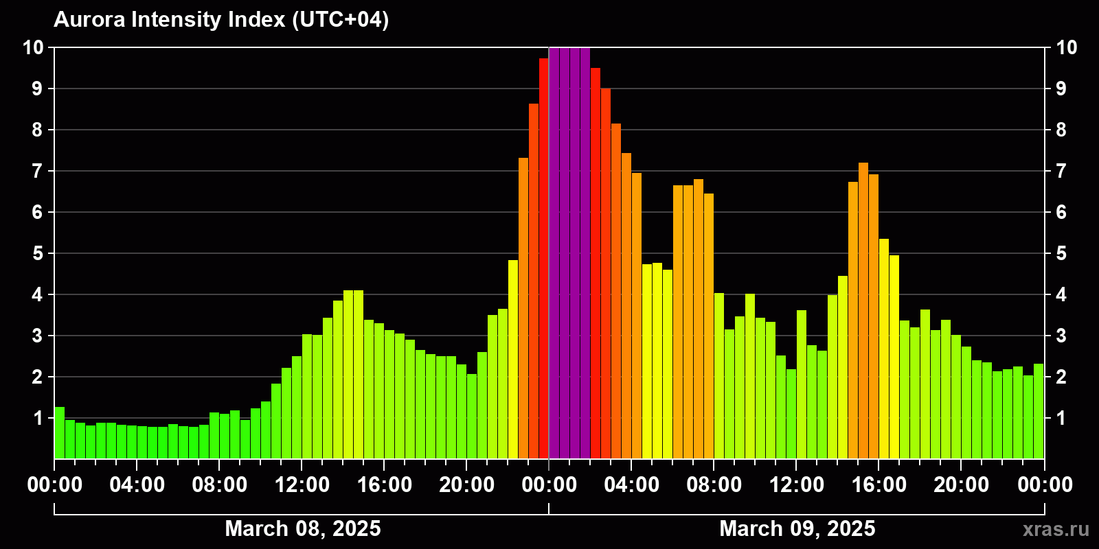 Auroras (northern lights) in Tolyatti — Mar 09, 2025