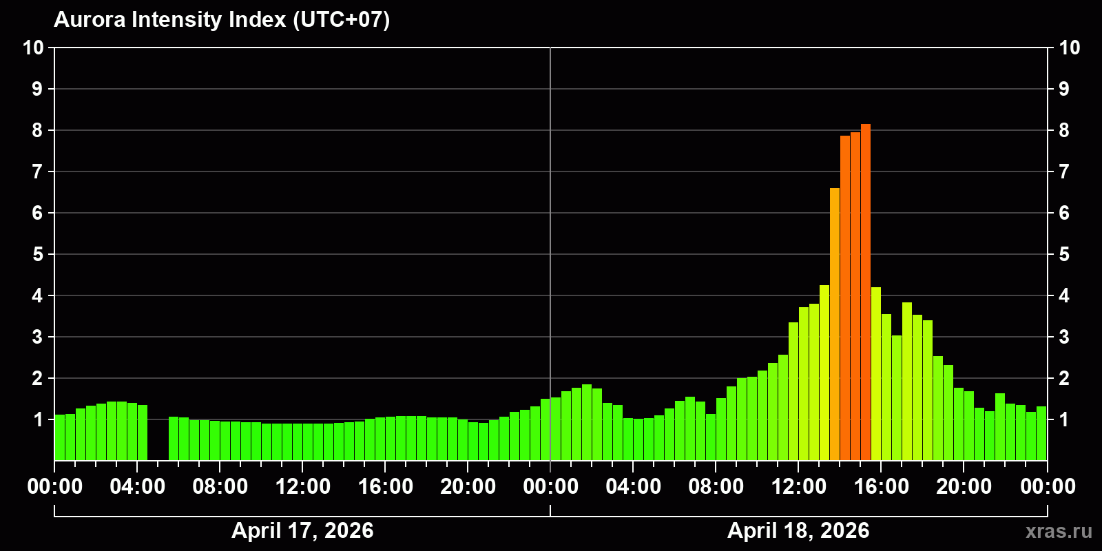 Changes in the auroral intensity index from 2026-04-17 to 2026-04-18 local time