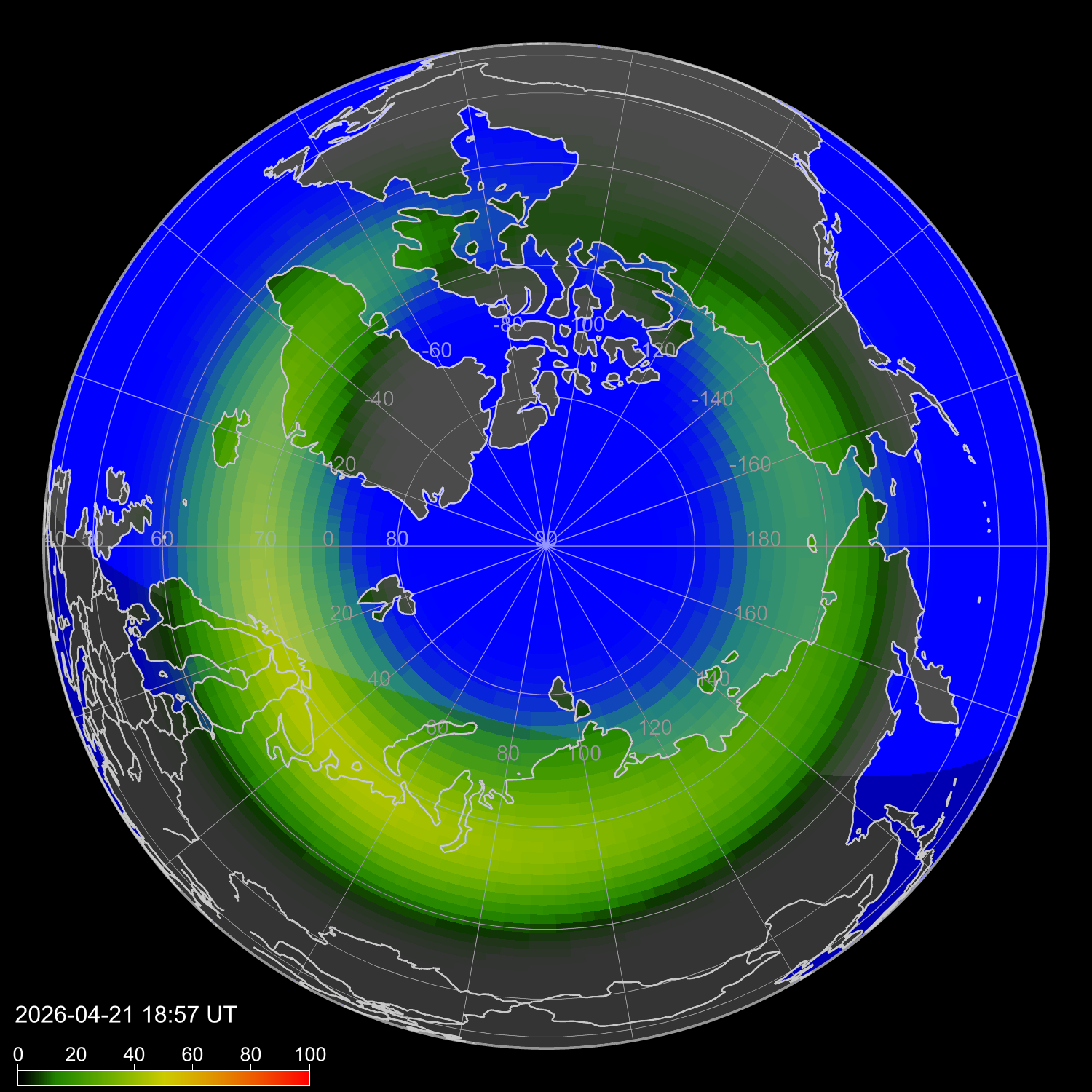 Probability of northern lights in Topeka