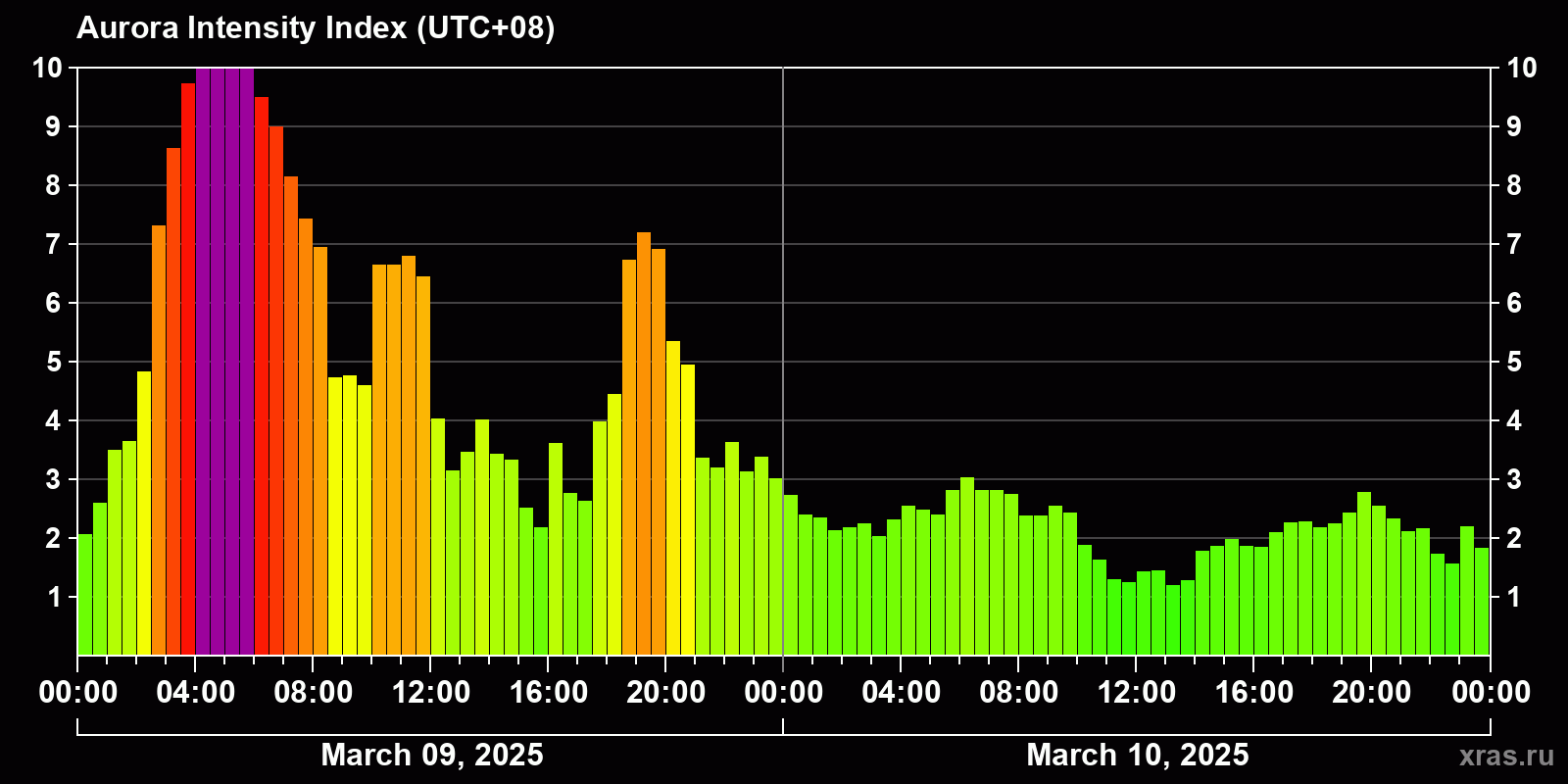 Auroras (northern lights) in Ulan-Ude — Mar 10, 2025