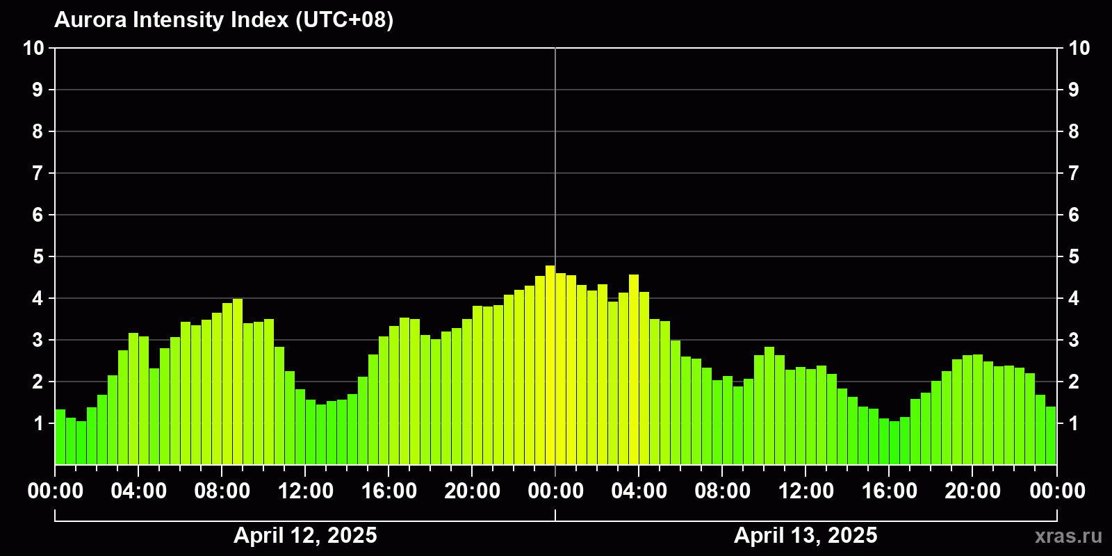Auroras (northern lights) in Ulan-Ude — Apr 13, 2025