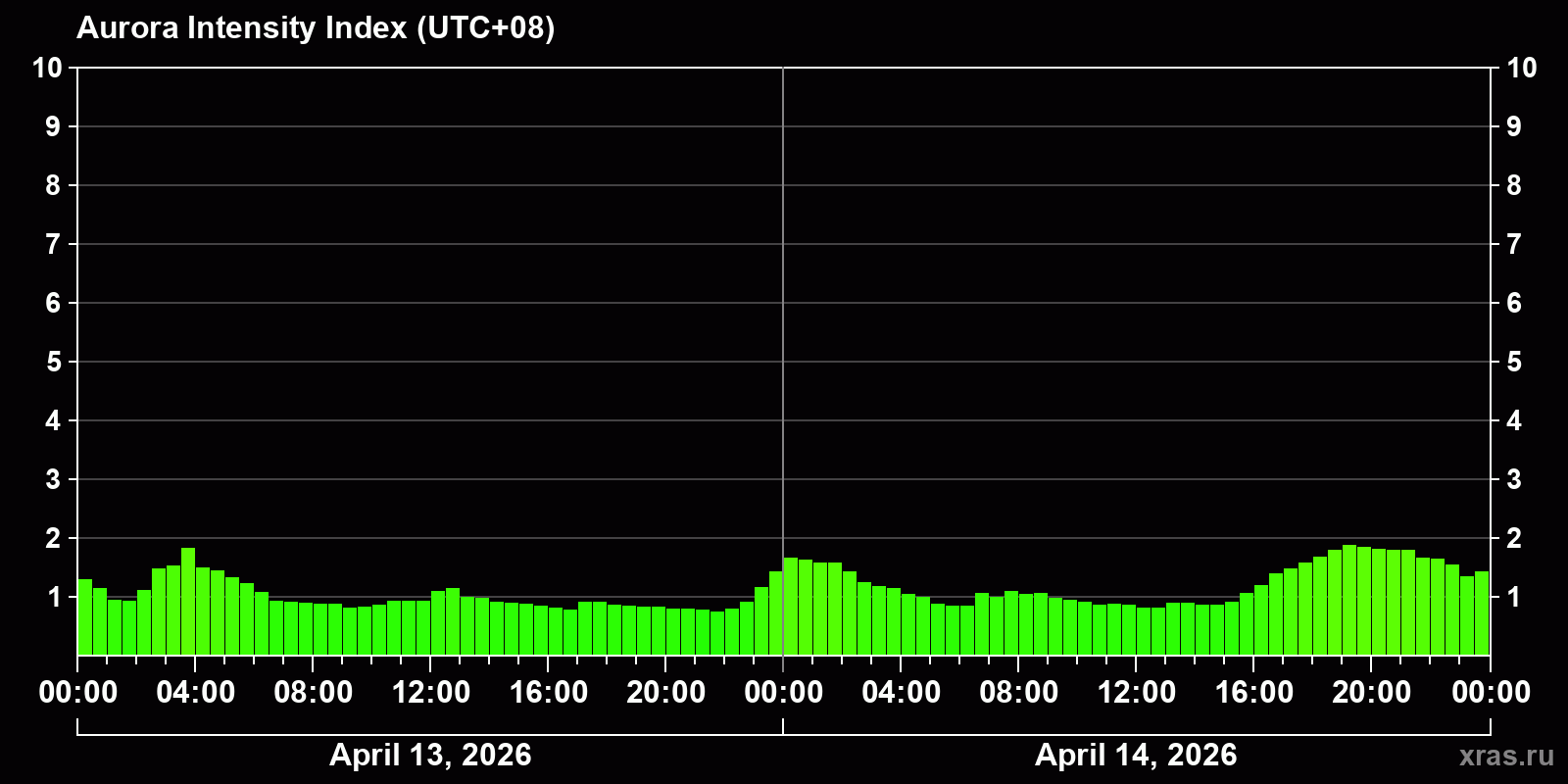 Auroras (northern lights) in Ulan-Ude — Apr 14, 2026