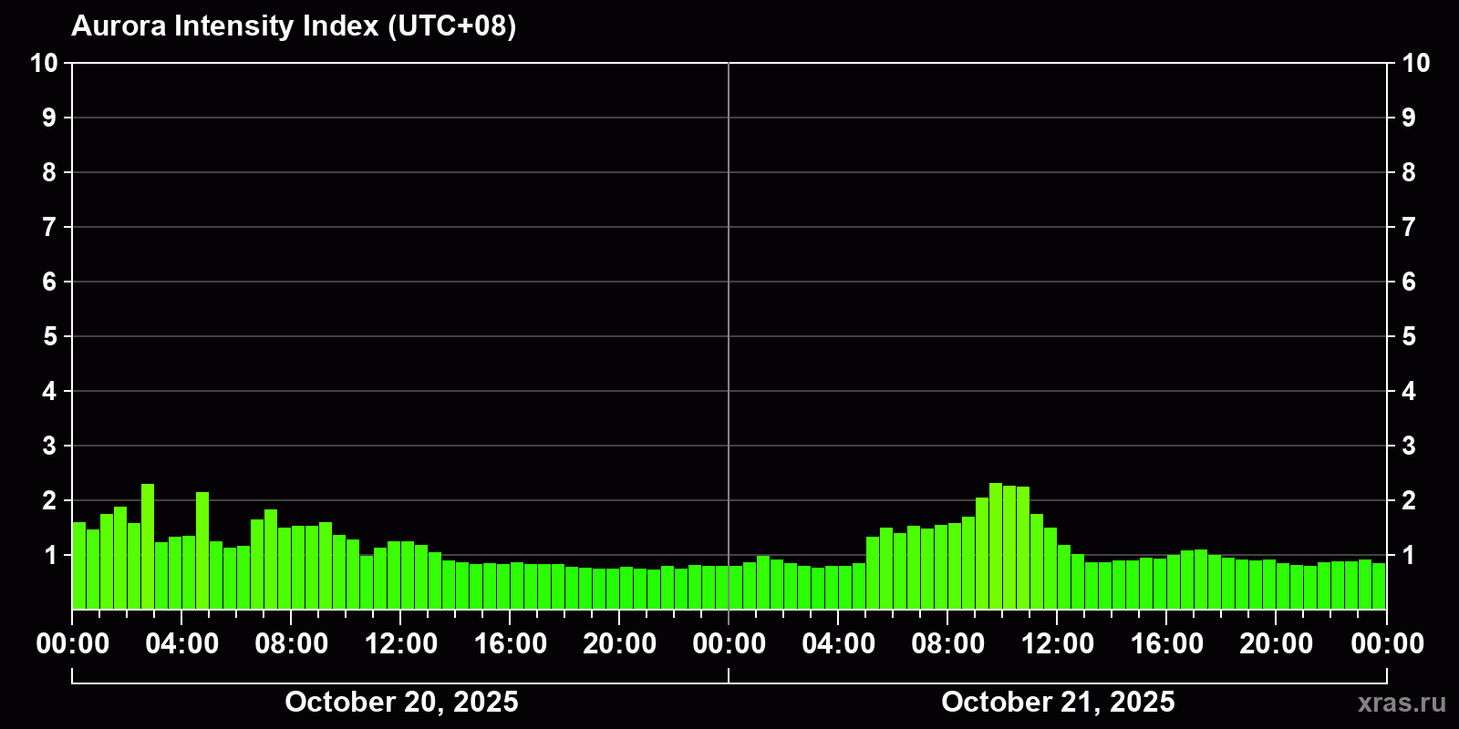 Auroras (northern lights) in Ulan-Ude — Oct 21, 2025