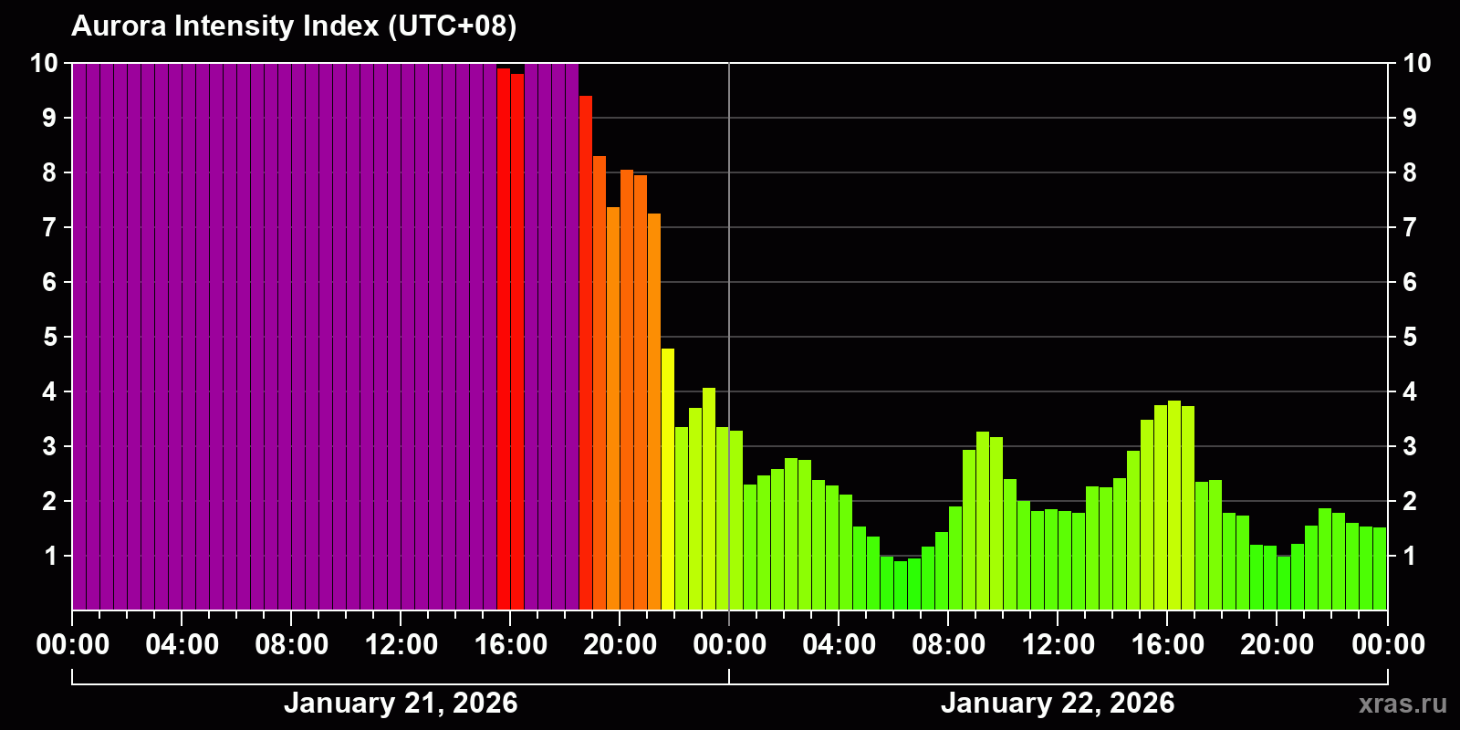 Changes in the auroral intensity index from 2026-01-21 to 2026-01-22 local time