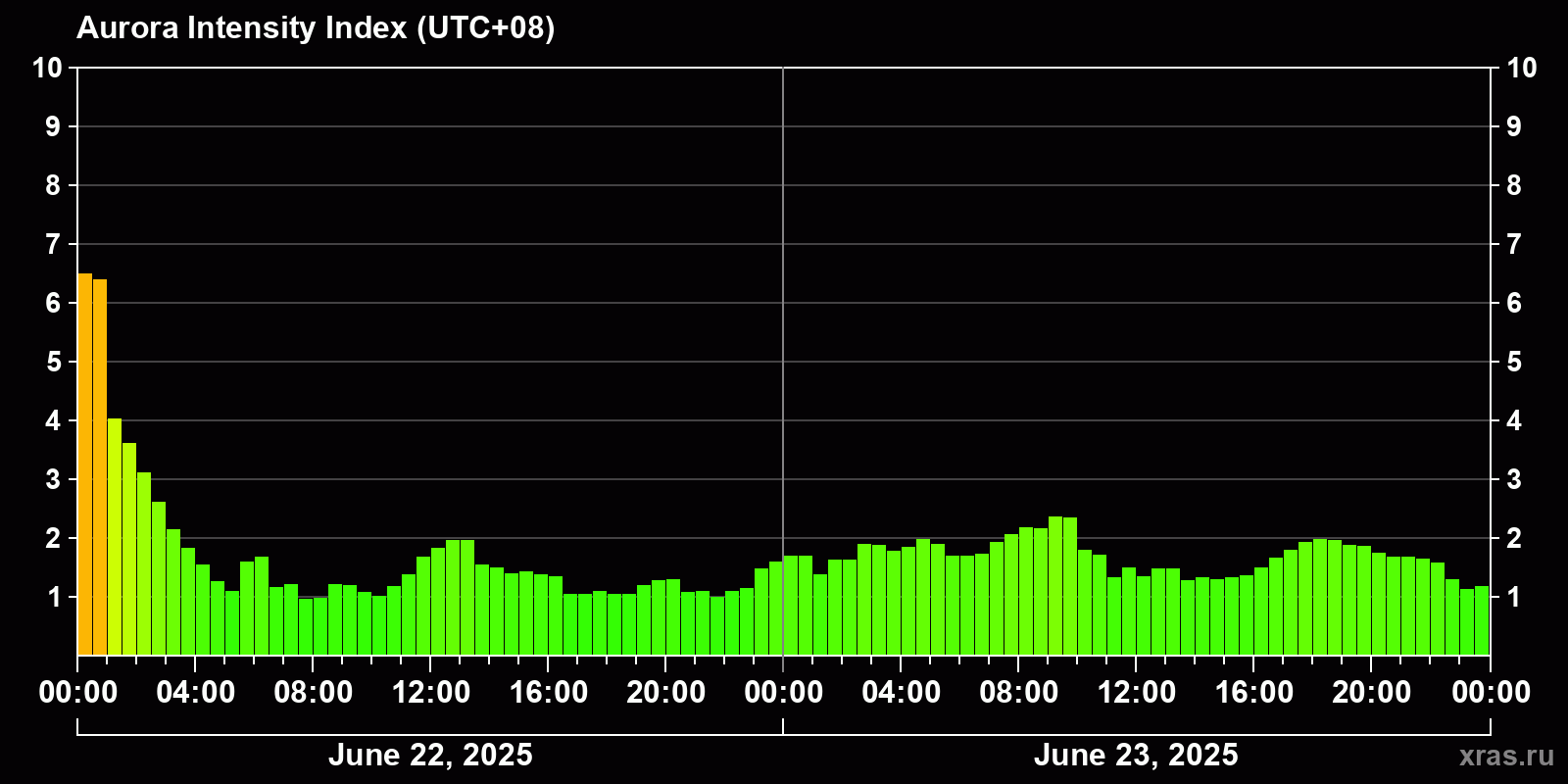 Auroras (northern lights) in Ulan-Ude — Jun 23, 2025