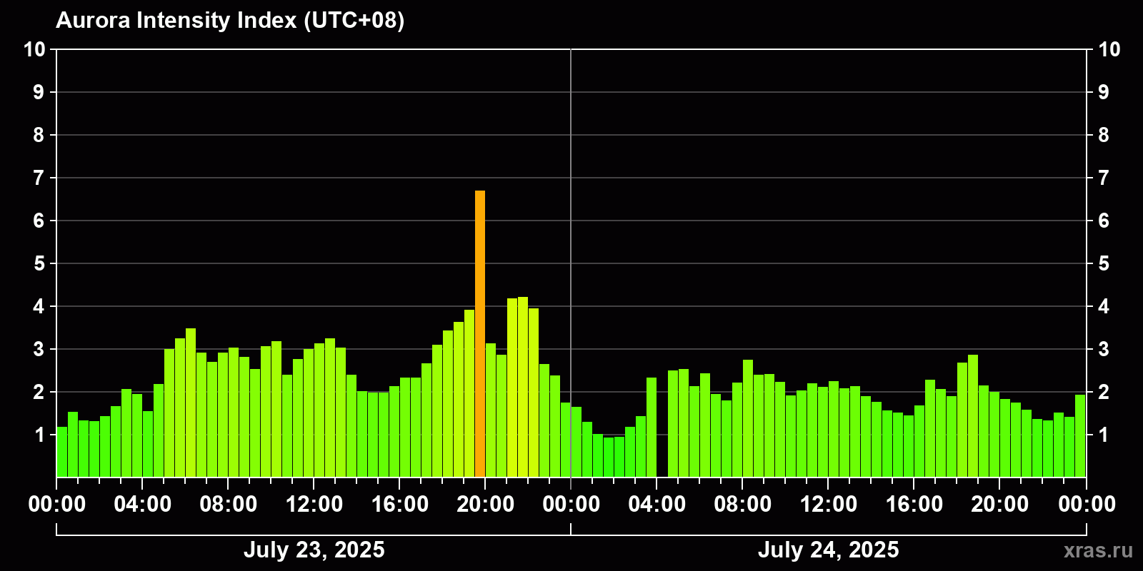 Auroras (northern lights) in Ulan-Ude — Jul 24, 2025