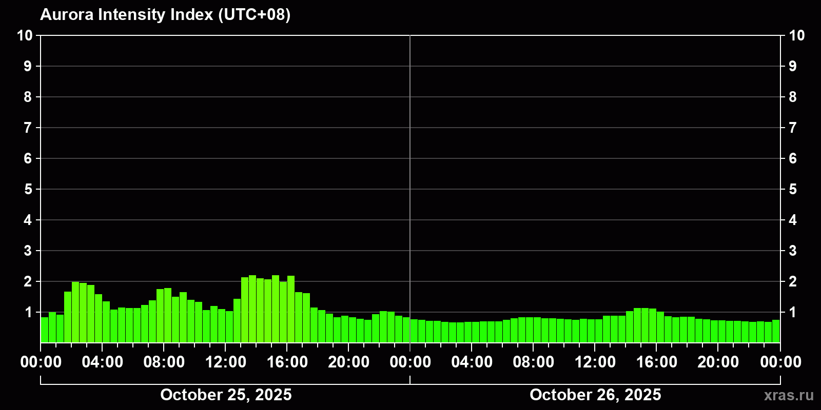 Changes in the auroral intensity index from 2025-10-25 to 2025-10-26 local time