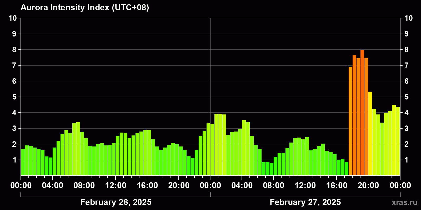 Auroras (northern lights) in Ulan-Ude — Feb 27, 2025