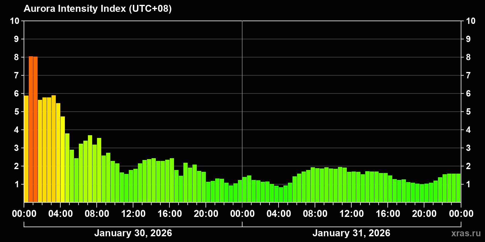 Auroras (northern lights) in Ulan-Ude — Jan 31, 2026
