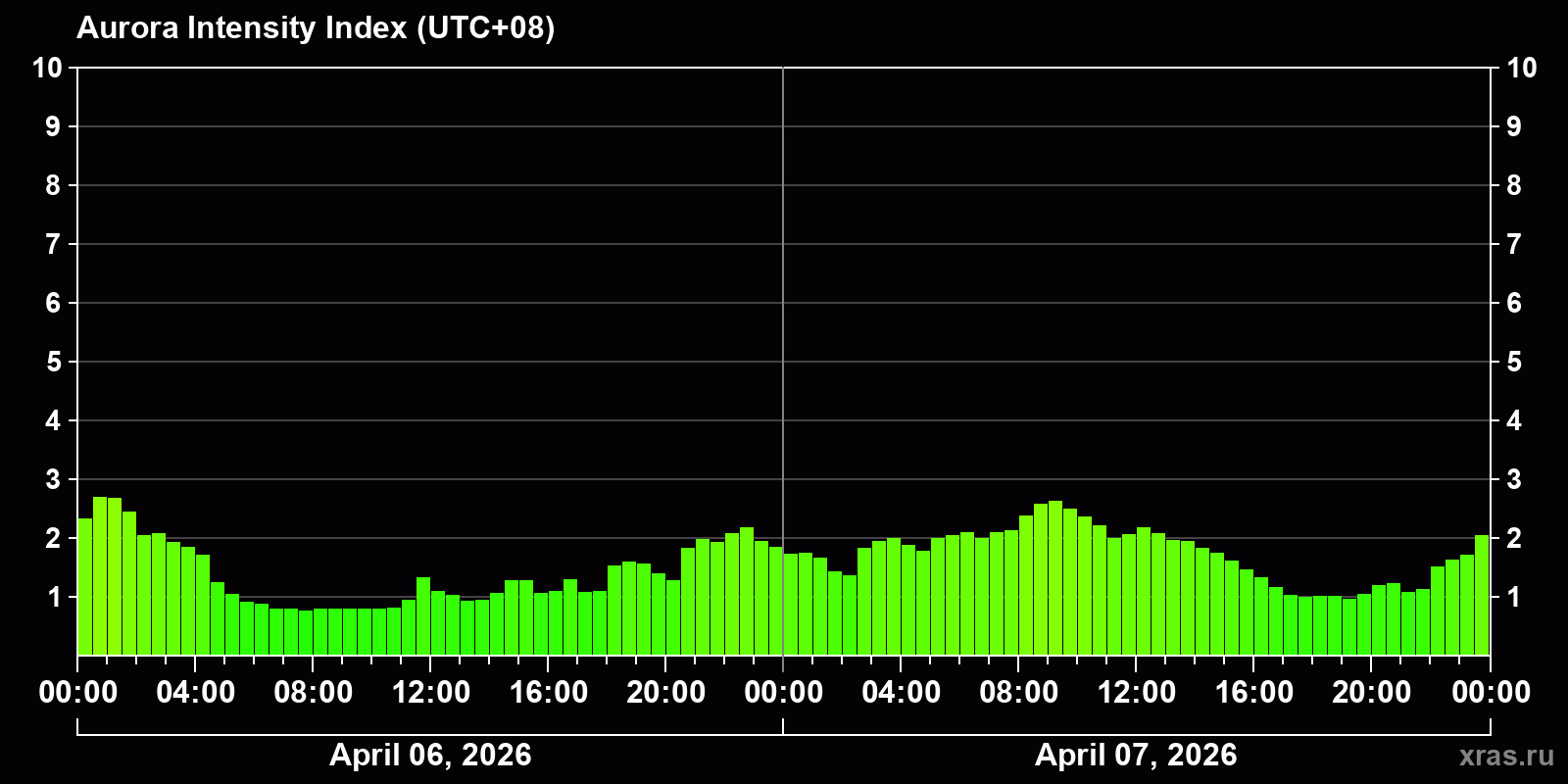 Auroras (northern lights) in Ulan-Ude — Apr 07, 2026