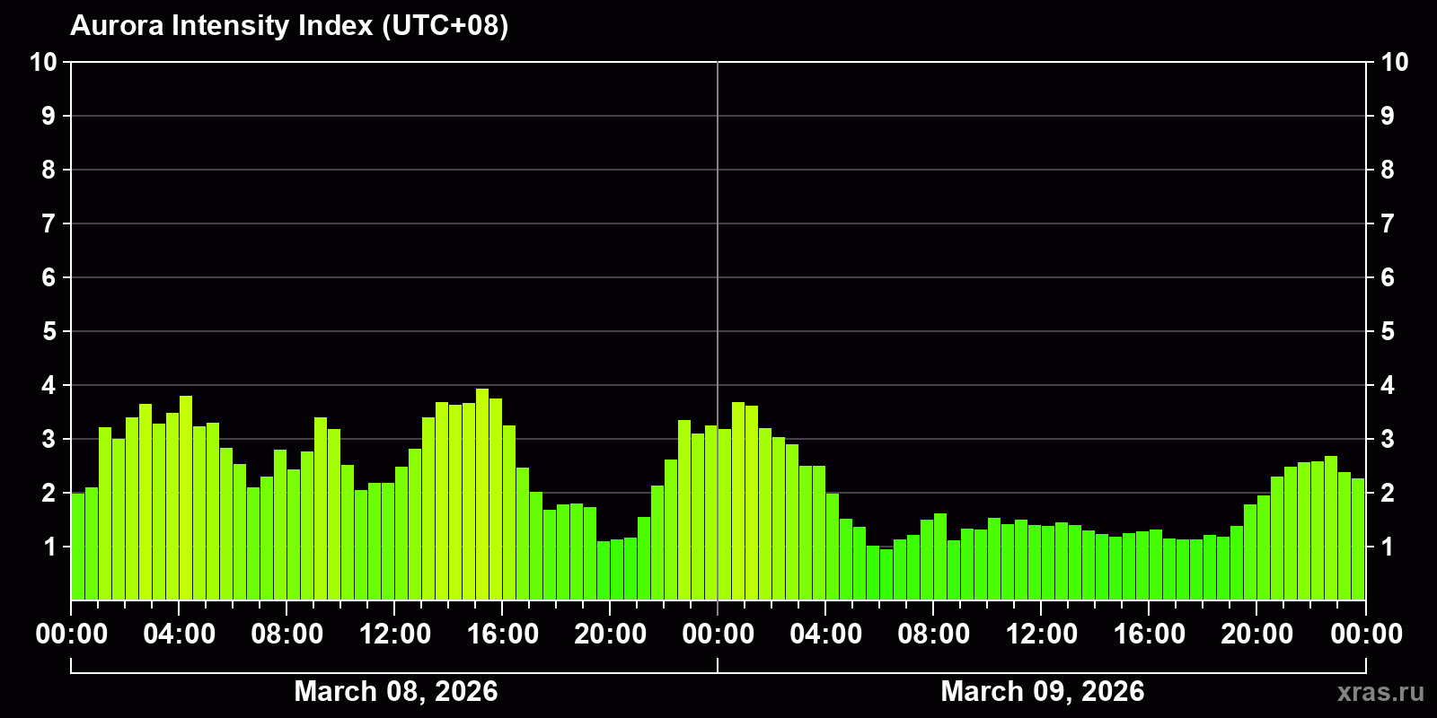 Auroras (northern lights) in Ulan-Ude — Mar 09, 2026