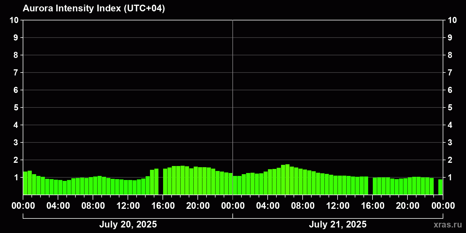 Changes in the auroral intensity index from 2025-07-20 to 2025-07-21 local time