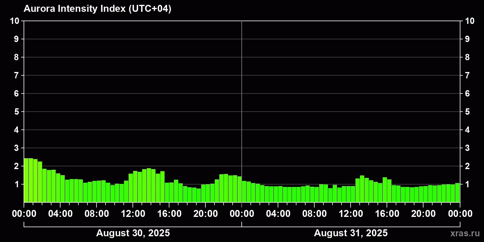 Auroras (northern lights) in Ulyanovsk — Aug 31, 2025