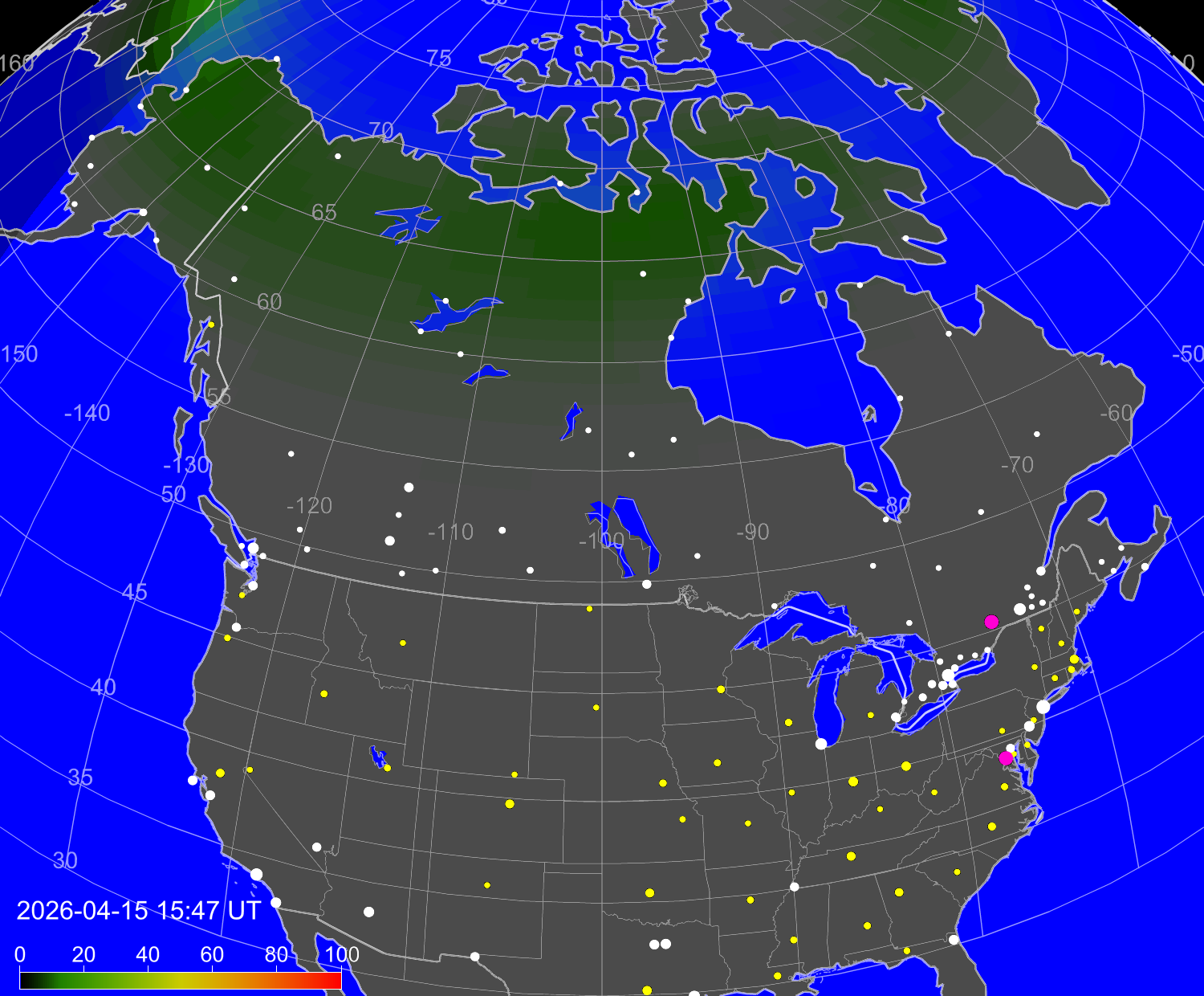 Northern lights (auroras) over North America