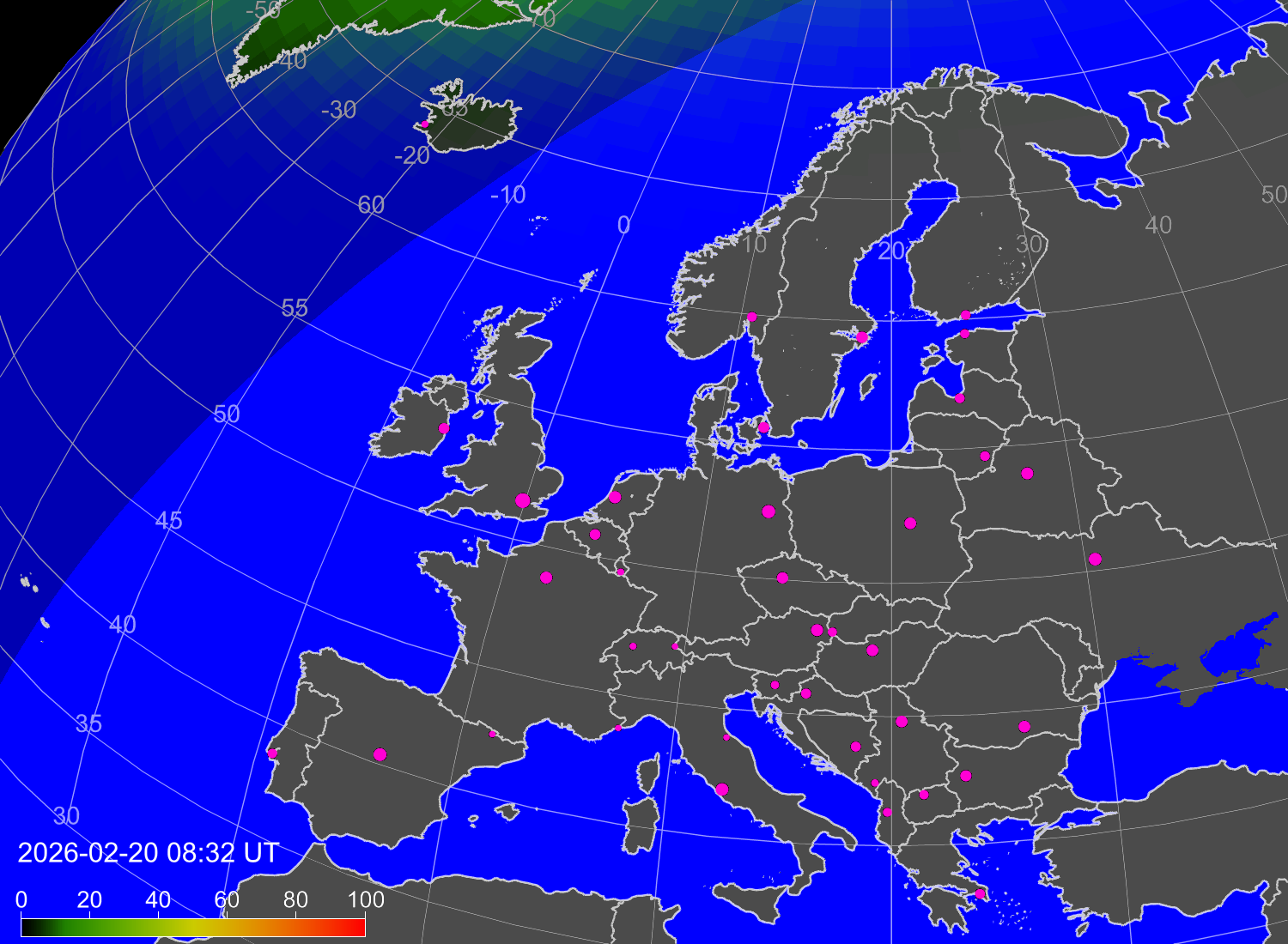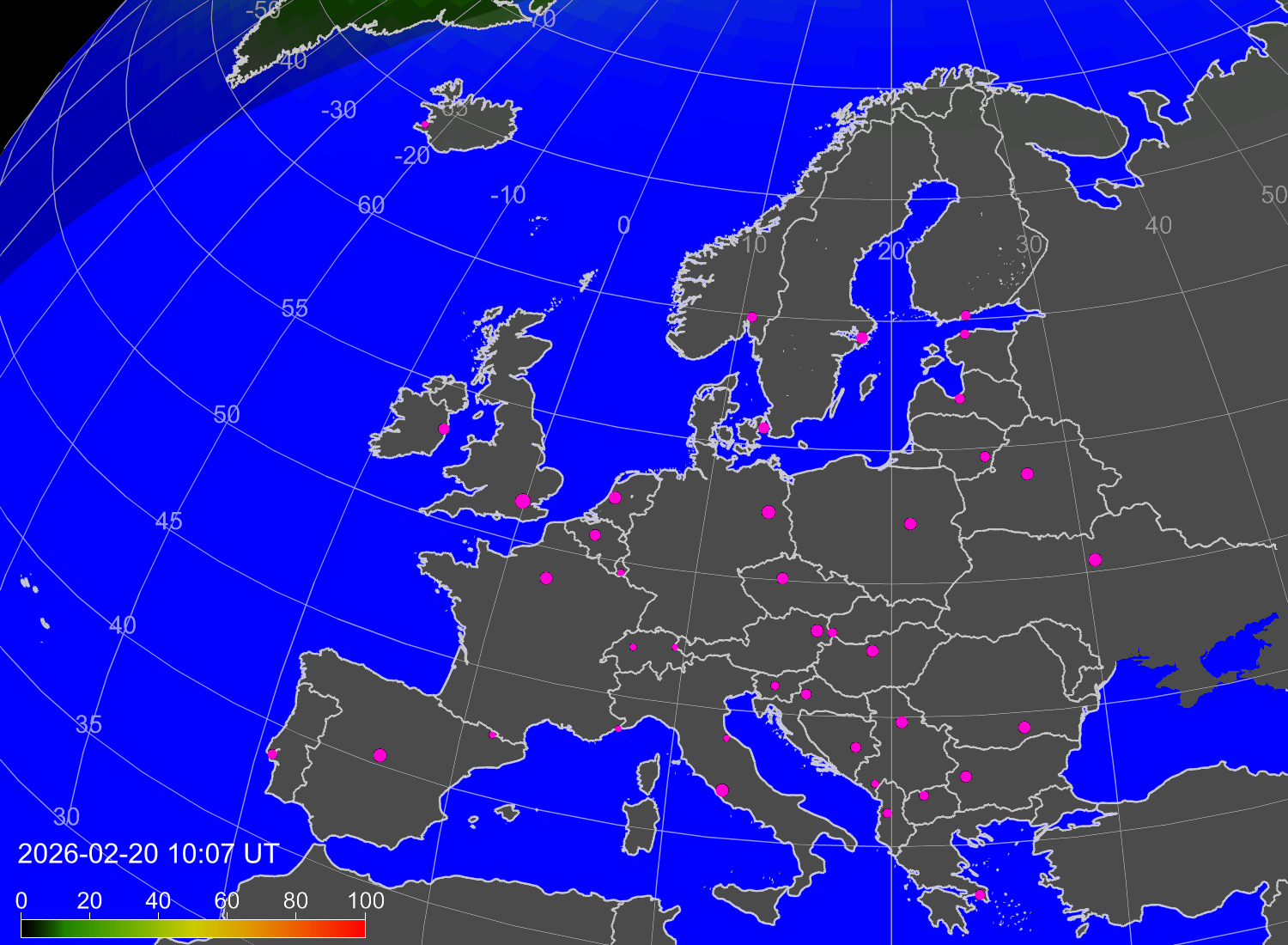 Вероятность полярных сияний в городах Европы