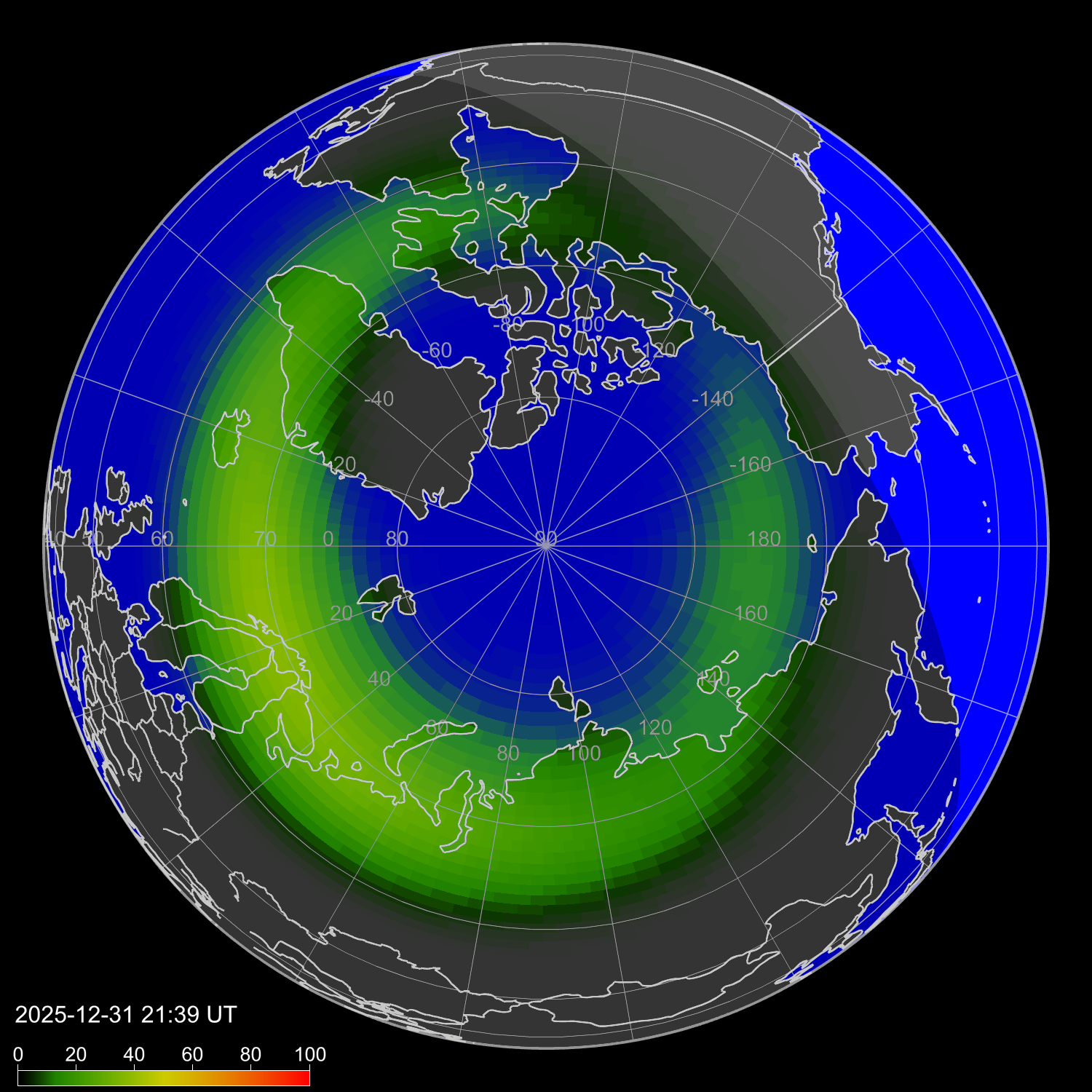 Интенсивность полярных сияний