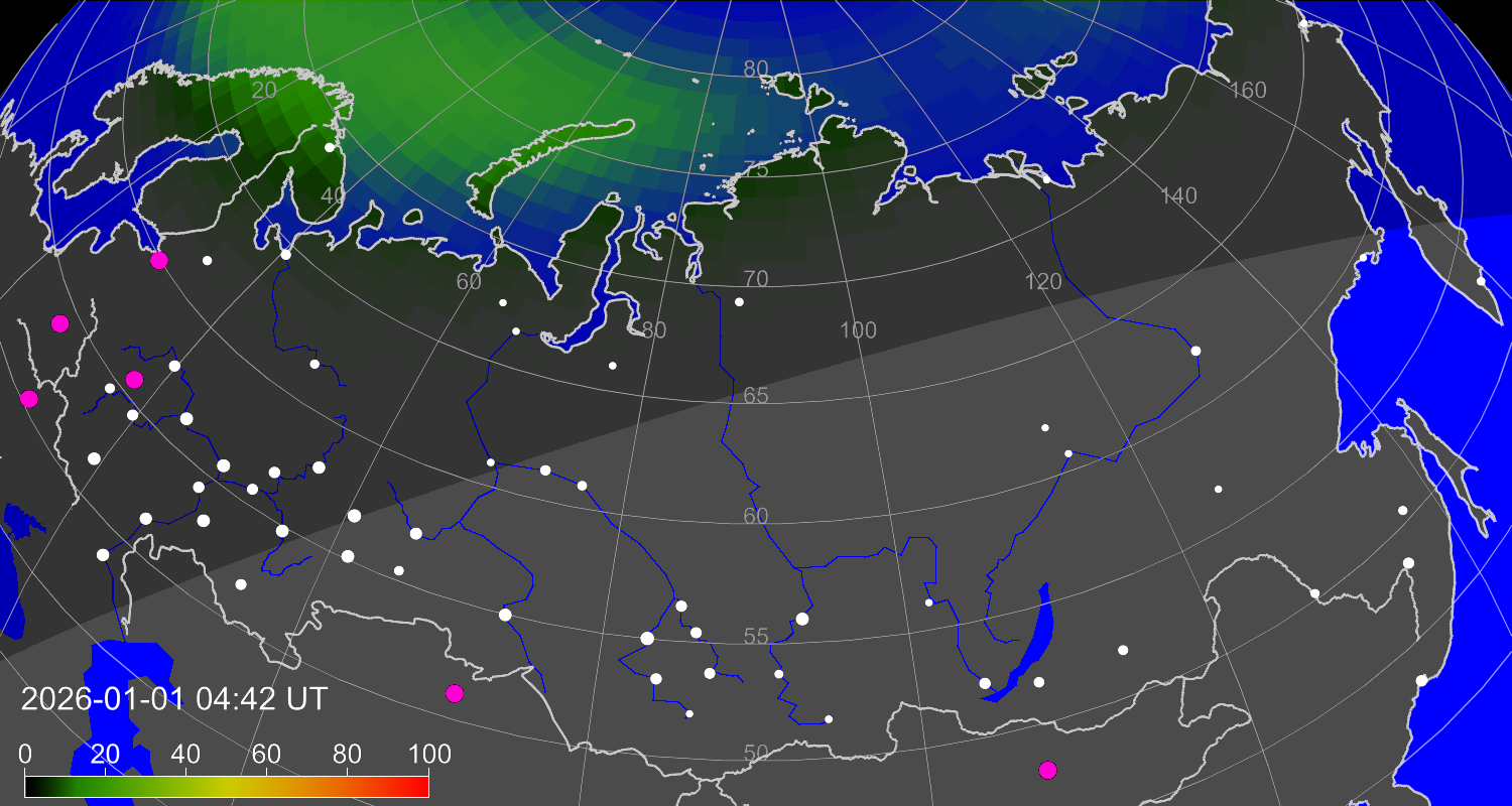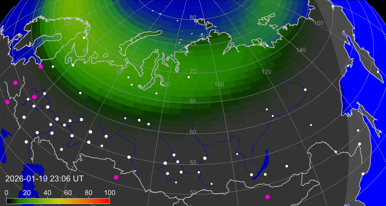 Зона полярных (северных) сияний над территорией Евразии