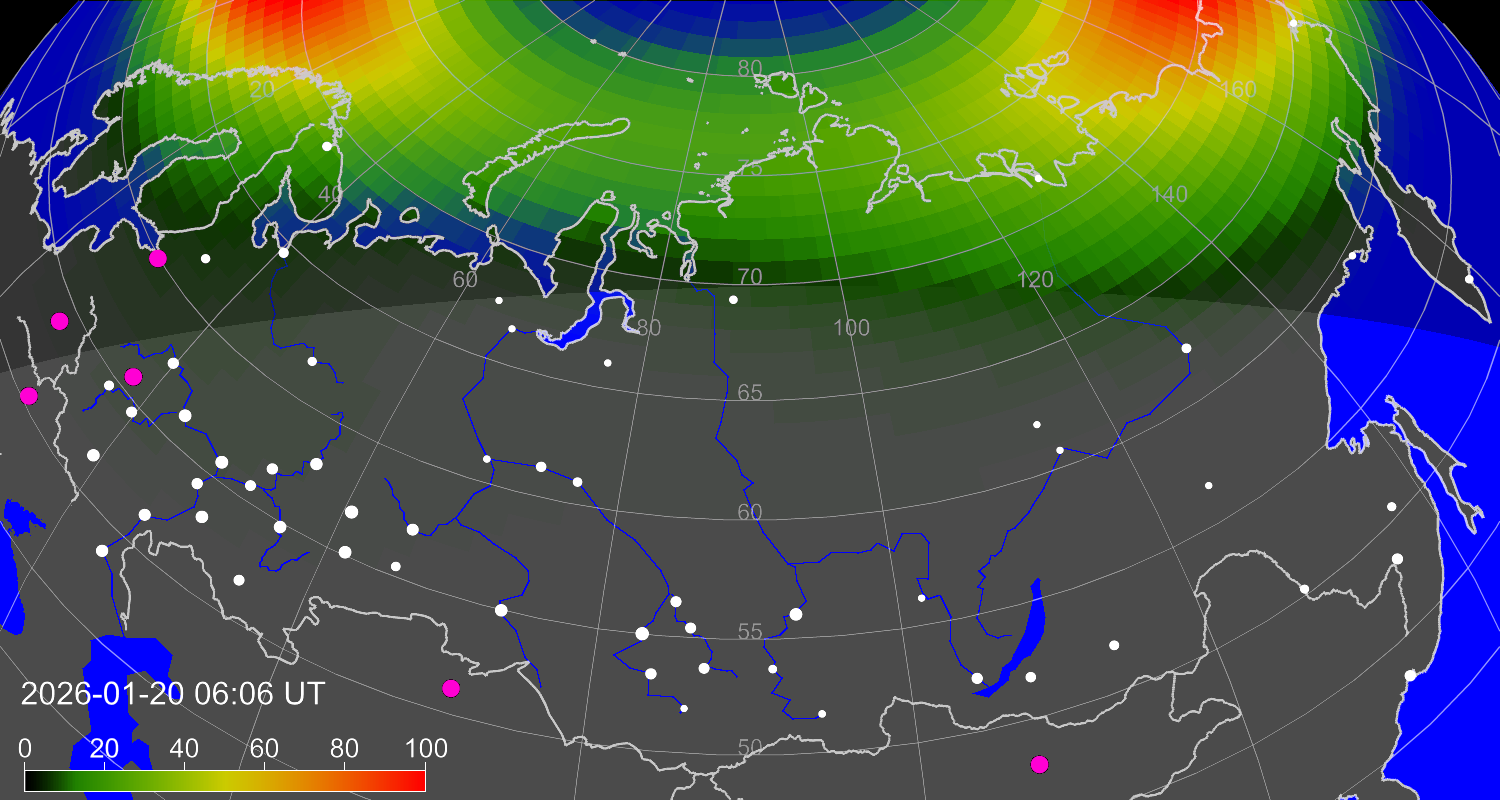Зона полярных (северных) сияний над территорией Евразии