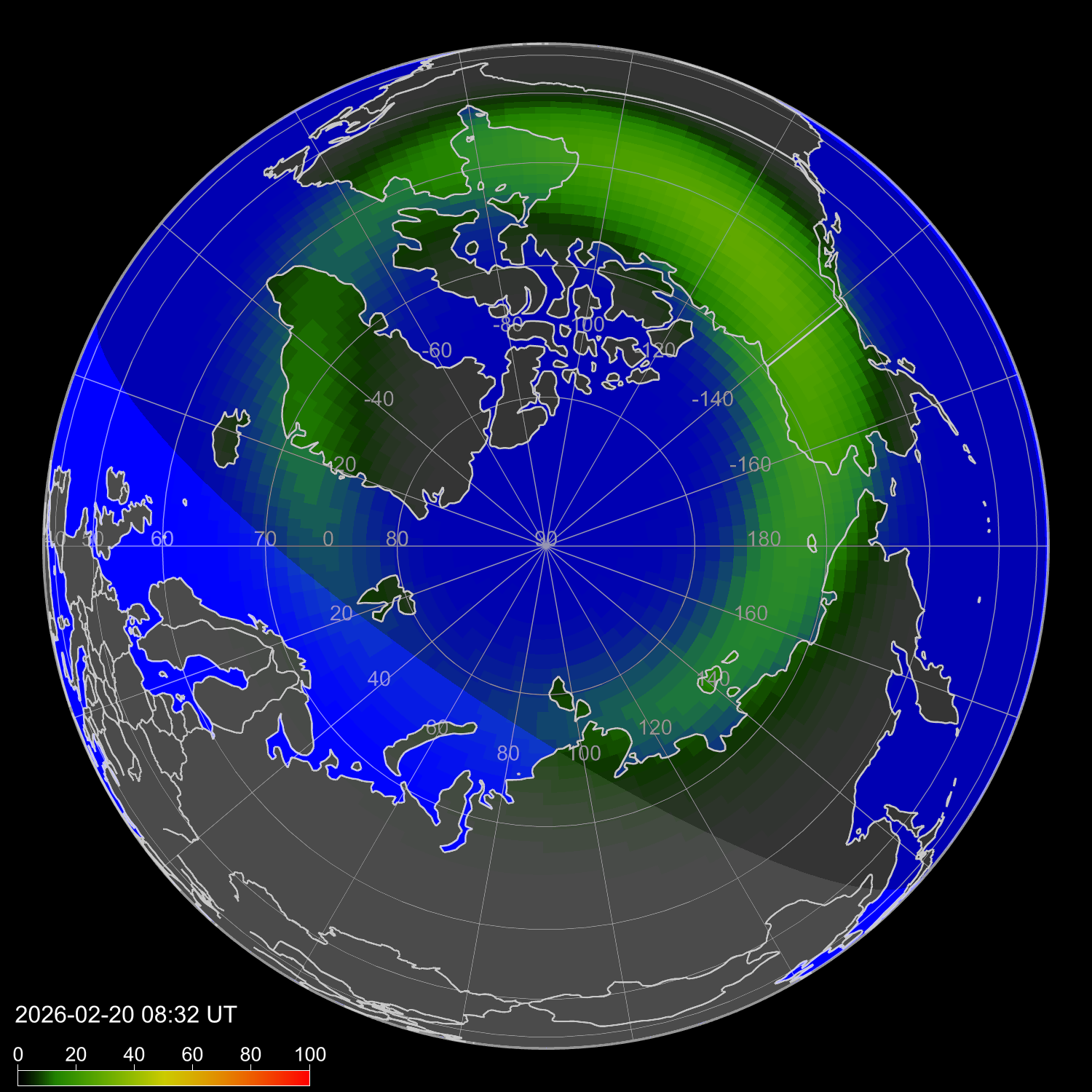 Зона полярных сияний в северном полушарии