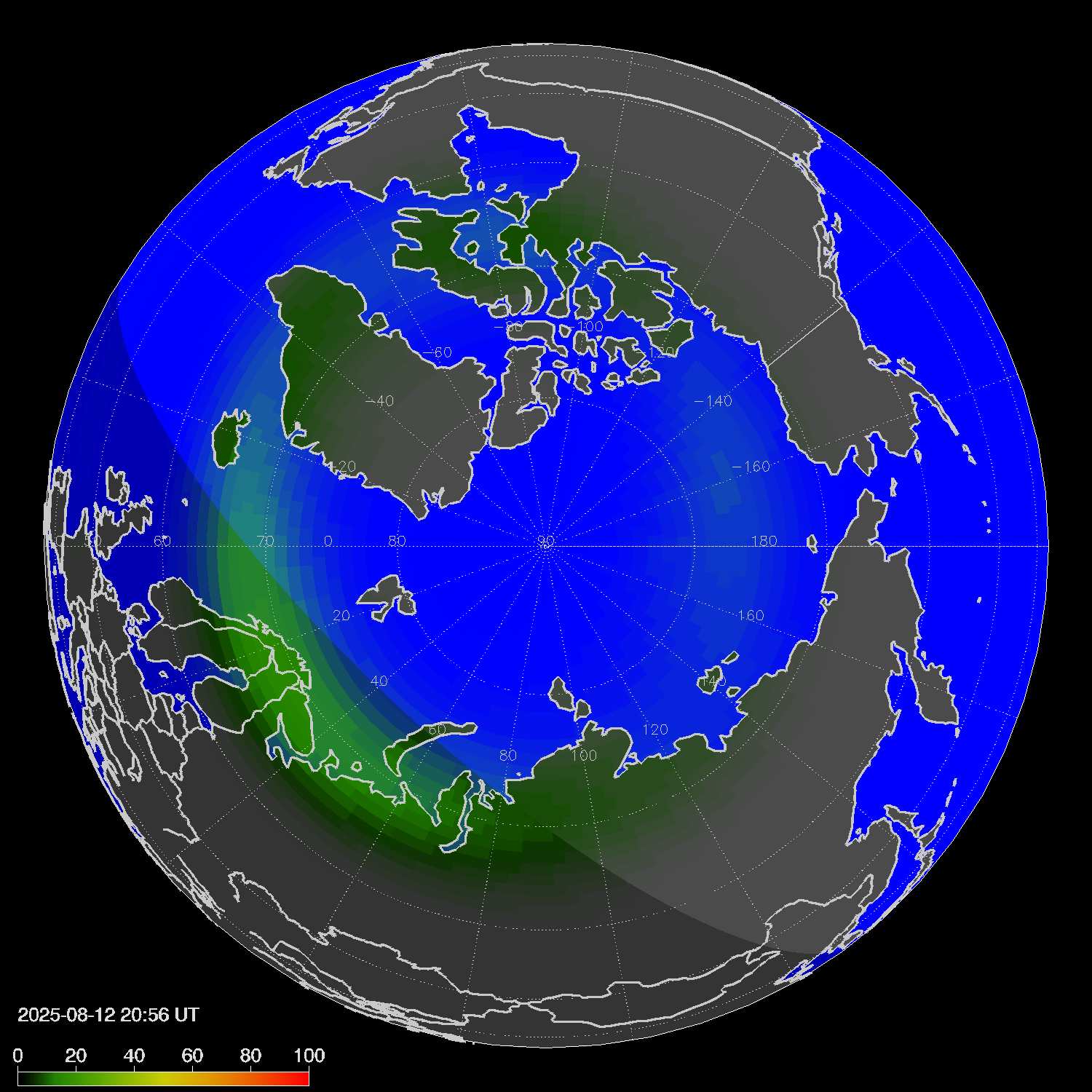 Probability of northern lights in Voronezh
