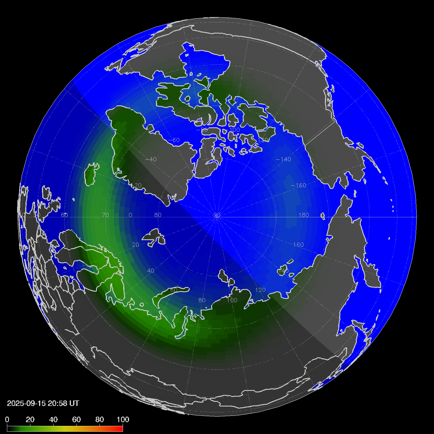 Probability of northern lights in Voronezh