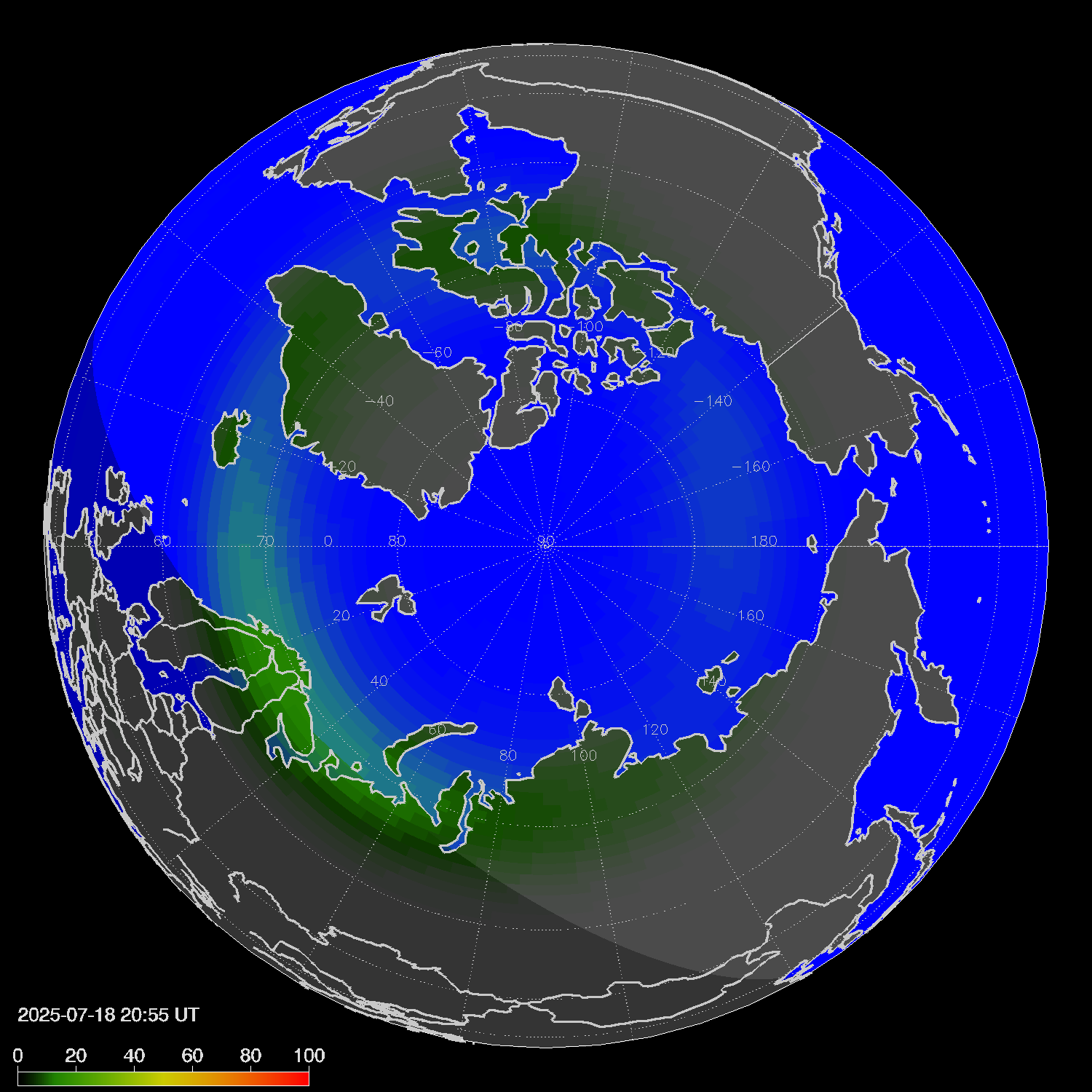 Probability of northern lights in Voronezh