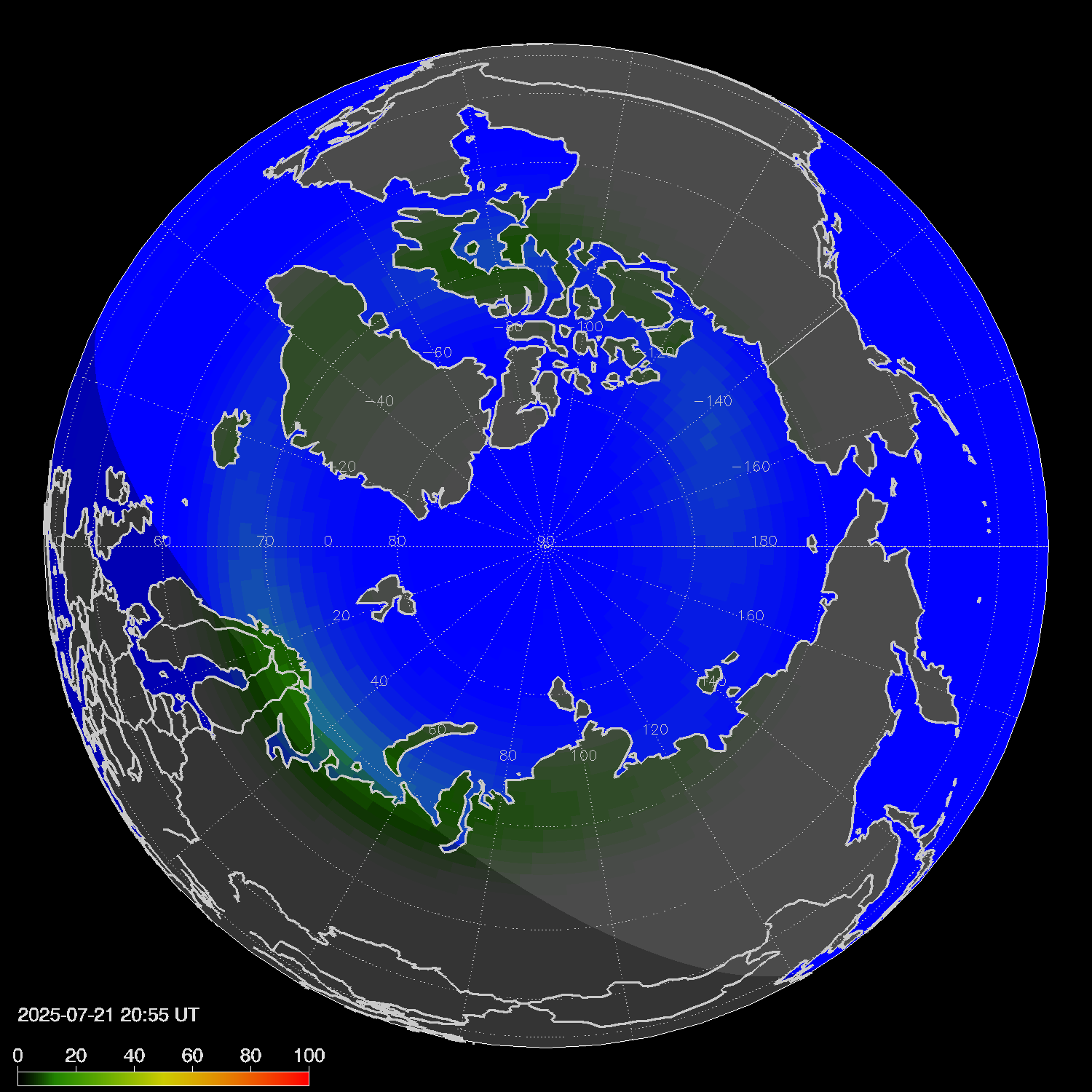 Probability of northern lights in Voronezh