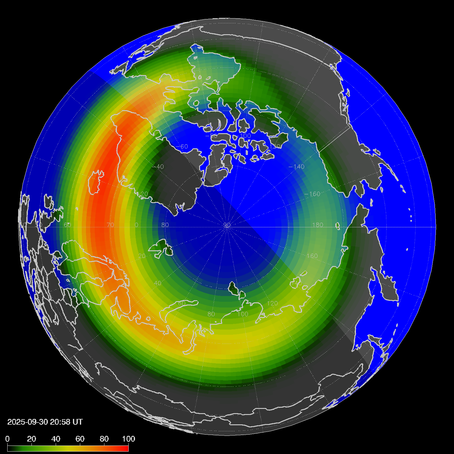 Probability of northern lights in Voronezh