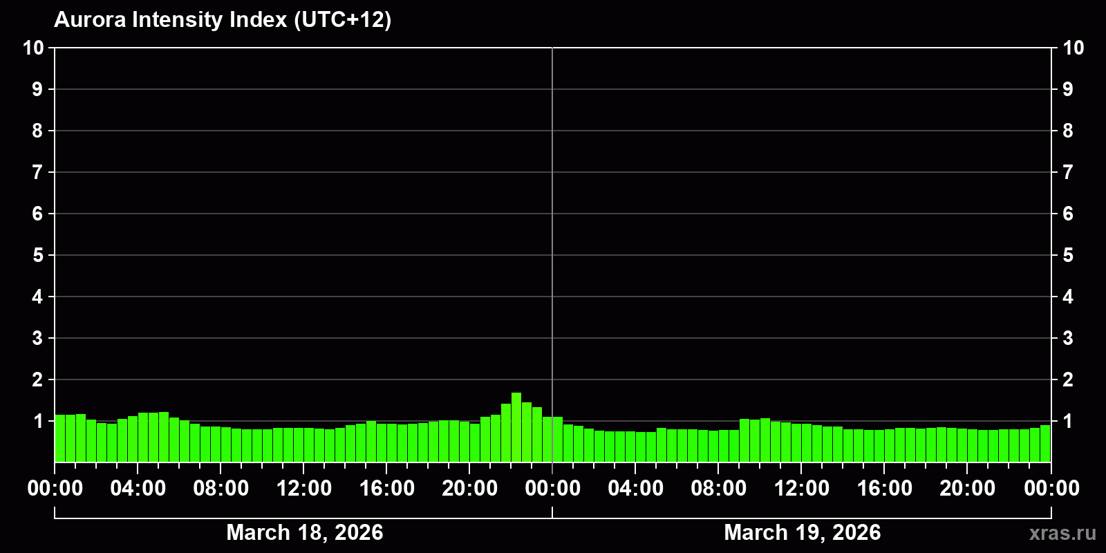Changes in the auroral intensity index from 2026-03-18 to 2026-03-19 local time
