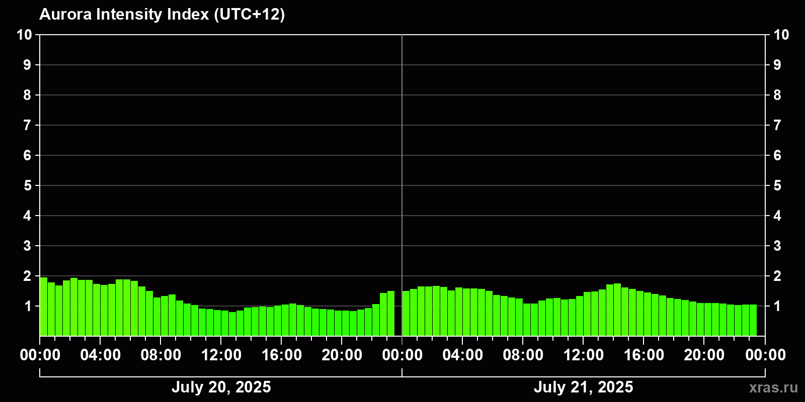 Changes in the auroral intensity index from 2025-07-21 to 2025-07-22 local time